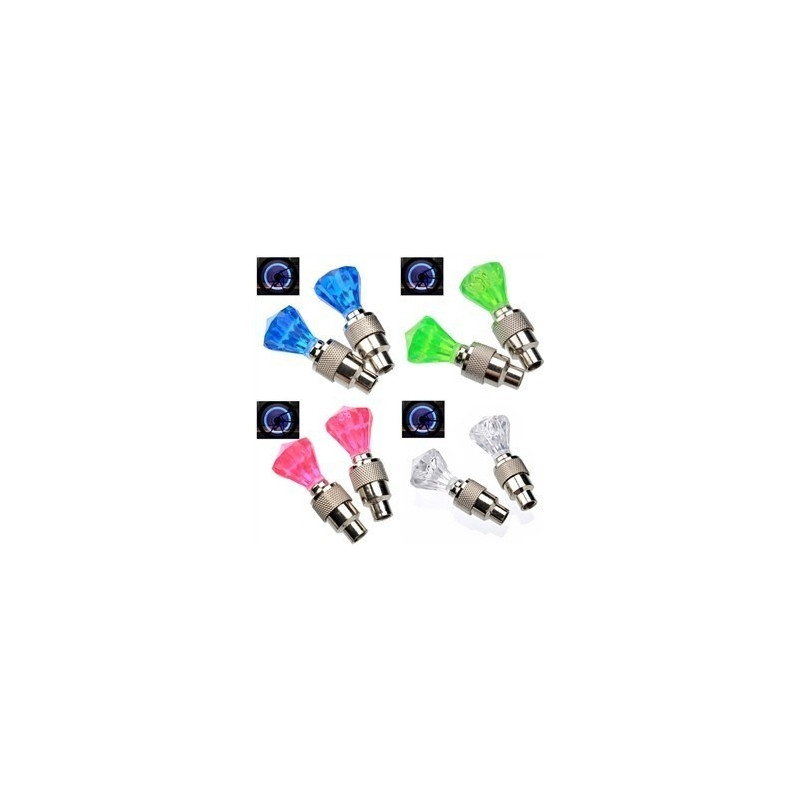 Монтират се лесно върху вентилите на гумите, като заместват обикновените капачки. Те светят само когато гумата се движи, което значи, че могат да се използват за всякакви превозни средства - автомобили, камиони, велосипеди, мотори, мотоциклети и други. Дизайнът им е изчистен и стилен, с прозрачна светеща част във формата на диамант. Изработени са от висококачествена пластмаса и метален корпус, което гарантира тяхната здравина и дълготрайност. Размерите им са компактни, за да се поберат лесно във всяка опаковка.