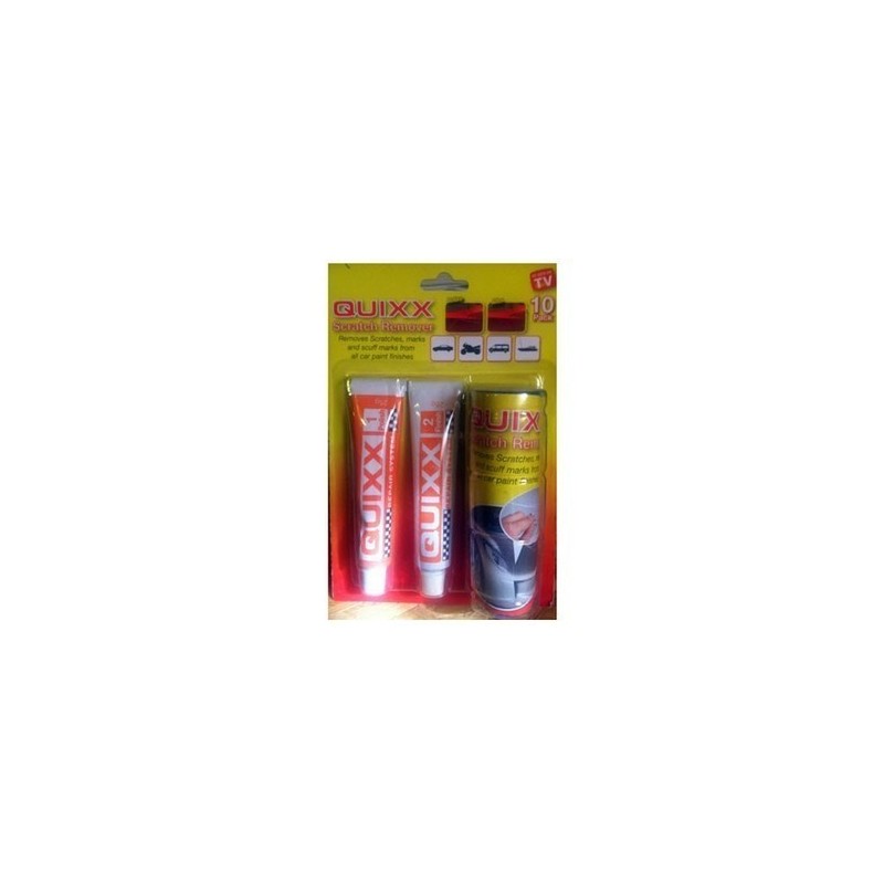 Комплект QUIXX Scratch Remover е най-доброто решение за премахване на драскотини от вашата кола, мотор или джип. Този уникален комплект използва технология наречена пластична деформация, която ефективно премахва драскотини в дълбочина от всички бои и покрития. С QUIXX Scratch Remover ще можете да възстановите цвета на боята и да я полирате, като резултатът ще бъде видим веднага след процедурата.