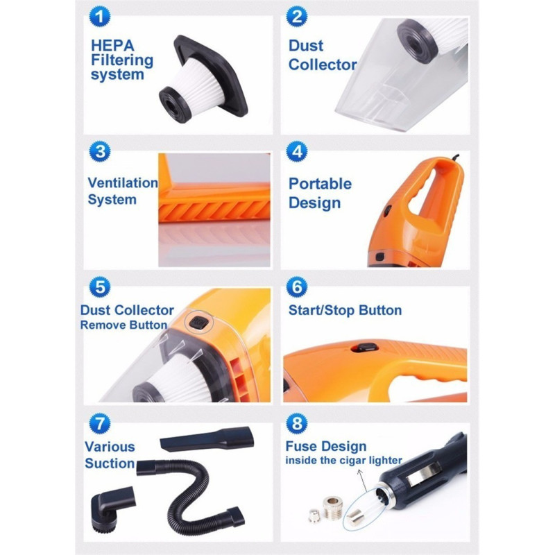 С предложеното от нас компактно и мощно устройство, поддържането на чистота във вашия автомобил става лесна и приятна задача. Независимо дали сте от хората, които се грижат за чистотата на колата си всеки ден, или правите това еднократно в месеца, нашата прахосмукачка за автомобил е идеалното решение за вас.