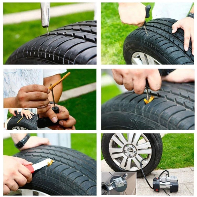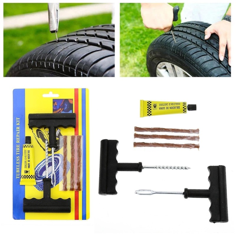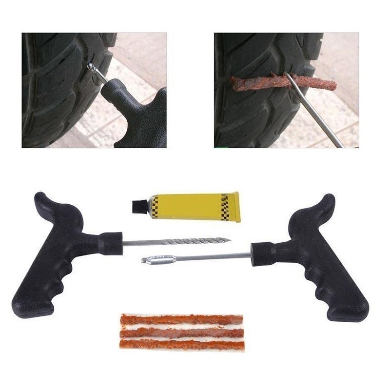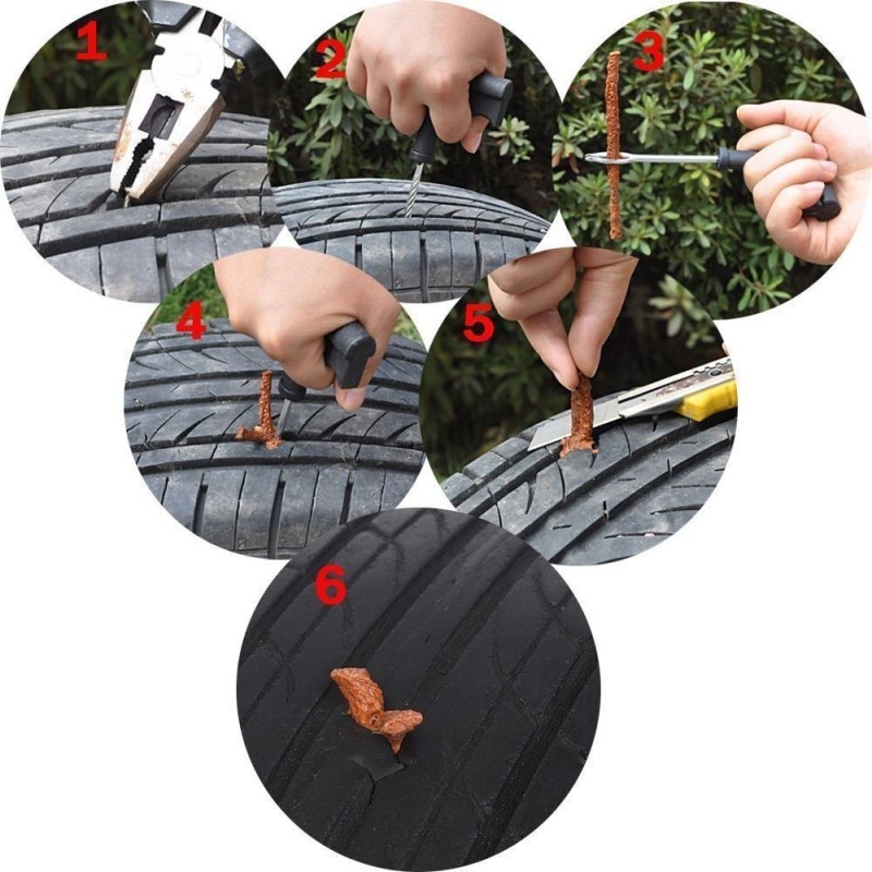 комплект от инструменти, който ви позволява бързо и лесно да ремонтирате дупка на гума, без да отстранявате гумата от джантата