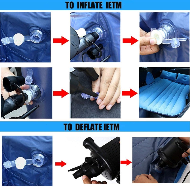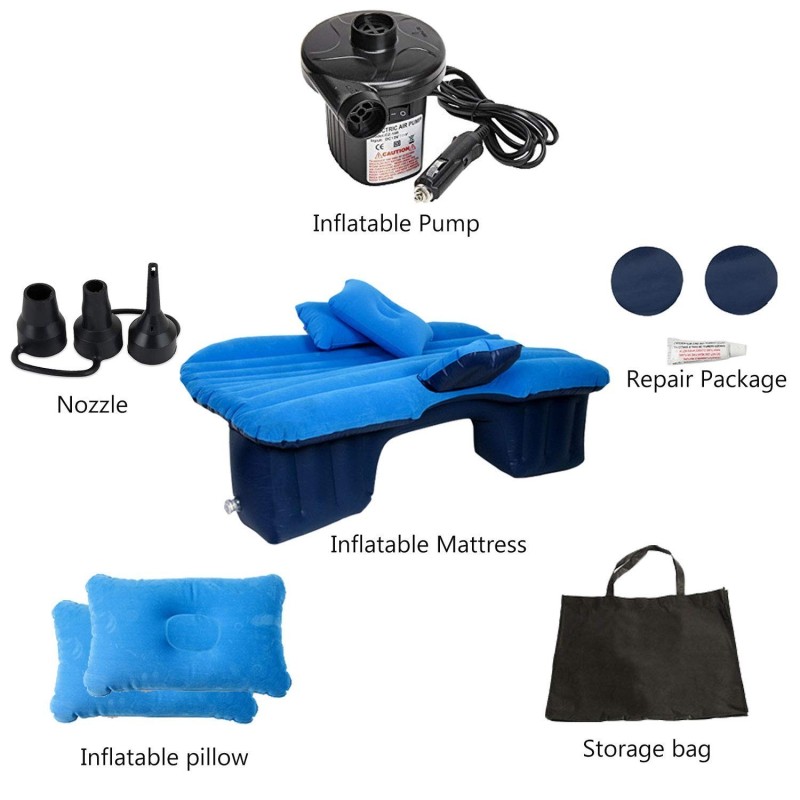 Комплектът включва няколко основни части, които гарантират вашето удобство. Опорният блок подпира матрака и осигурява хоризонтален комфорт, а възглавниците за глава и страничната възглавница ви предоставят допълнителен комфорт и подкрепа. Надуваемото авто-легло Car Travel Bed превръща вашата кола в удобна спалня, а включената малка електрическа помпа прави неговата употреба изключително лесна.