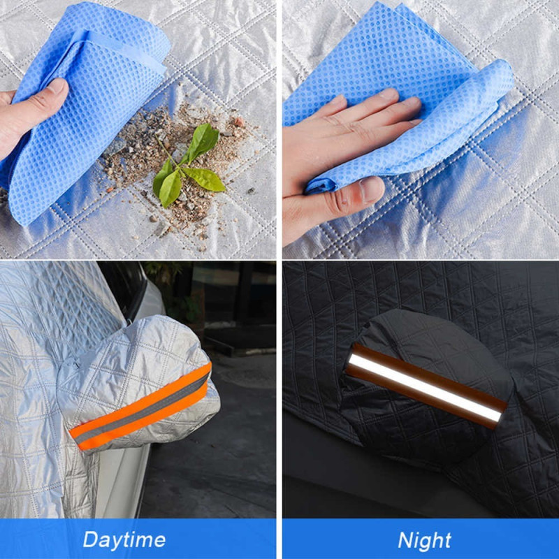 Характеристиките на това покривало включват алуминиево фолио, PE фолио, иглен памучен пълнеж, фин спрей и бяла подплата. Това е нова модернизирана версия от 2018 г., която предлага подобрен алуминиев филм със сгъстяване и светлоотразители за предните огледала. Покривалото е налично в един размер, подходящ както за лек автомобил, така и за SUV.