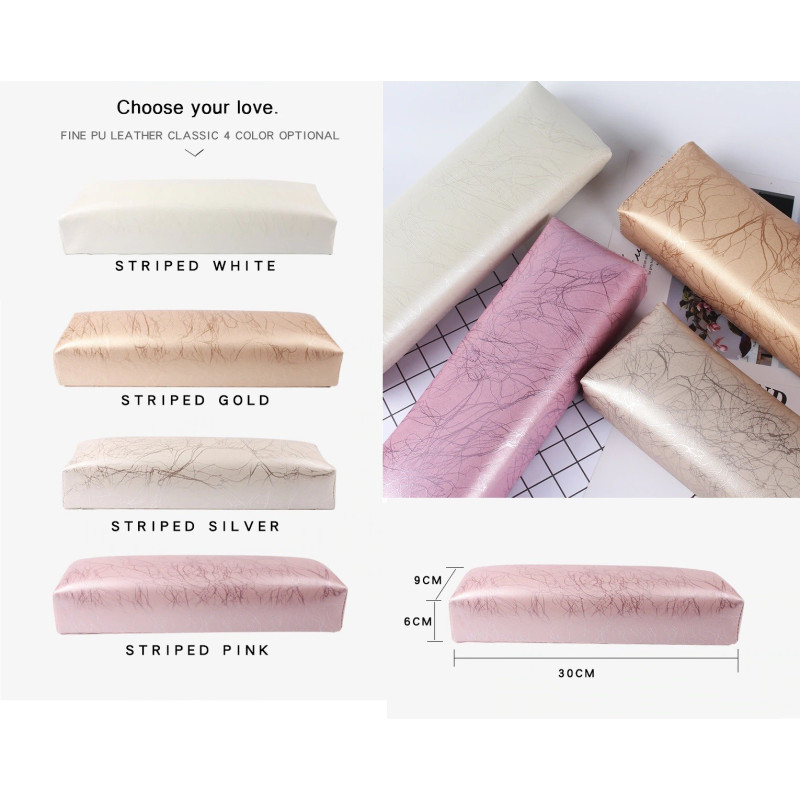 Тази професионална възглавничка за маникюр е изработена от висококачествена бяла изкуствена кожа, която може да бъде дезинфектирана със стандартни препарати, осигурявайки ви максимална хигиена и безопасност. Нейните размери - 30 х 9 х 6 см, са идеални за поставяне на ръцете ви и осигуряват комфортно положение по време на маникюра.