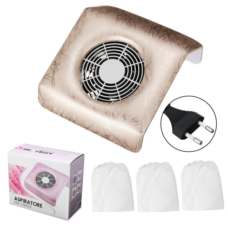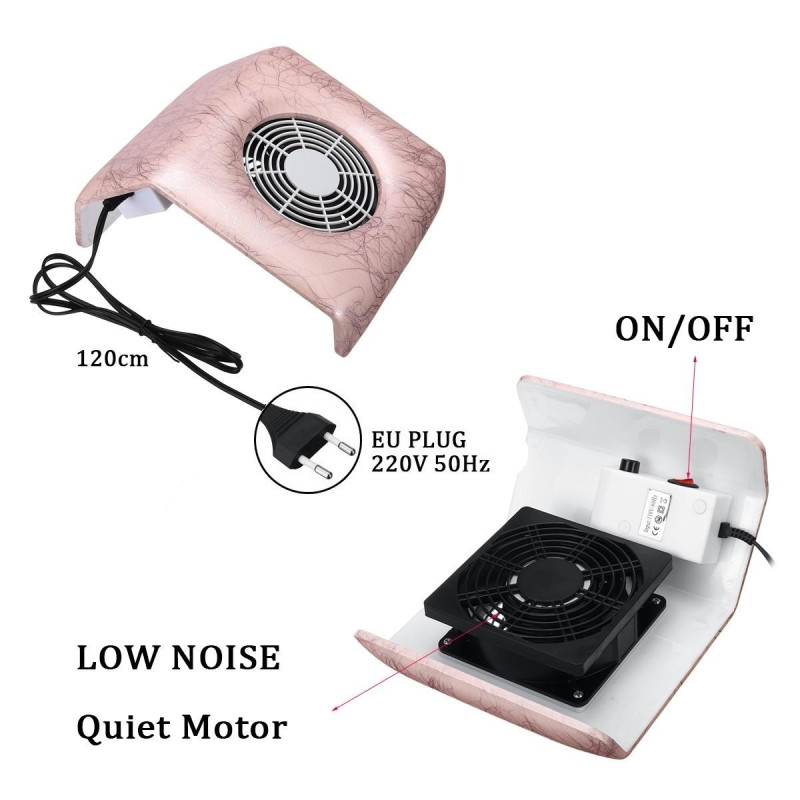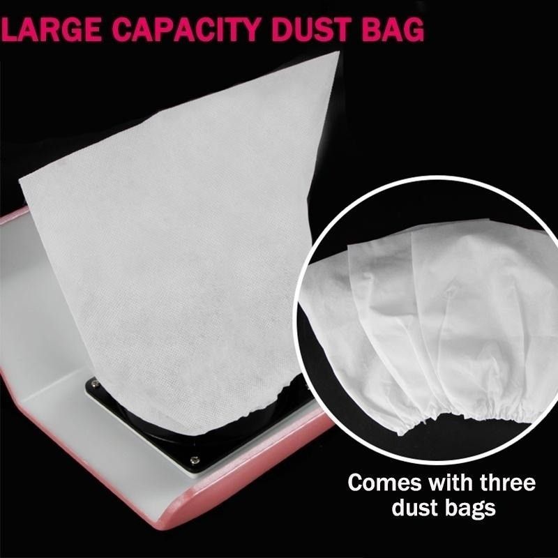 Малко салони често пренебрегват важността на прахоуловителя, но това е сериозна грешка. Не рискувайте здравето си и на вашите клиенти! Този уред улавя над 95% от прахта, която се образува при пилене на ноктите и я отвежда в специална торбичка, вместо да се разпръска по масата и в зоната за дишане. Така се предотвратява попадането на частици от гел или акрил в белия дроб, което може да доведе до сериозни проблеми.