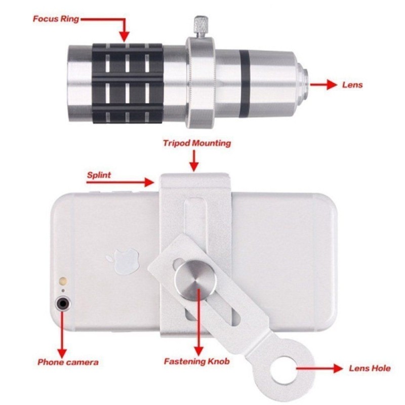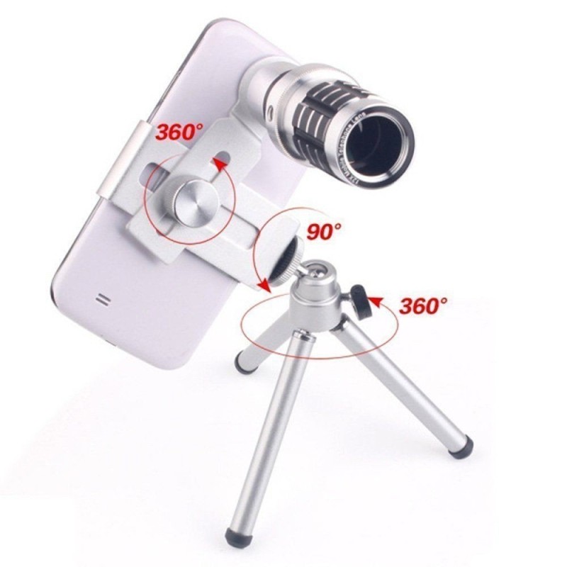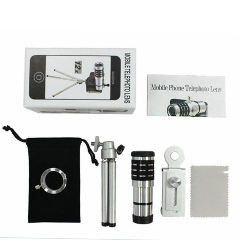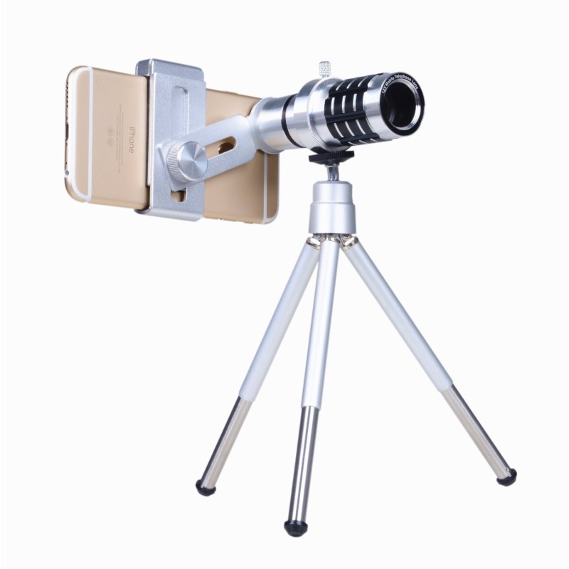 Имаме удоволствието да Ви представим 12X Zoom телескоп, Мобилен телеобектив комплект със статив за Мобилен телефон. Този комплект представлява идеалното решение за всеки, който иска да заснема професионални снимки и видео със своя мобилен телефон.