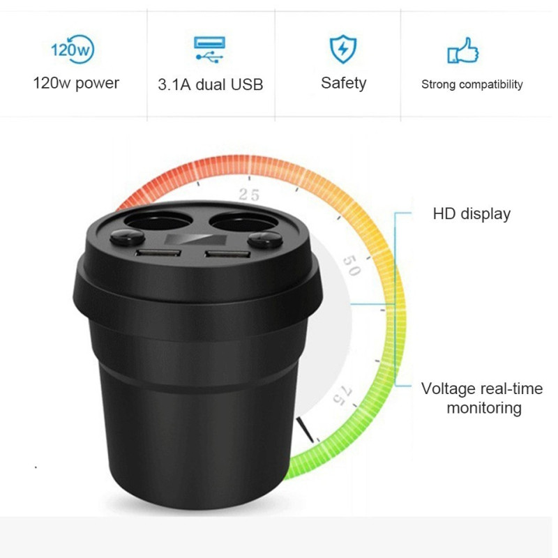 С формата на чаша, този разклонител е лек и компактен, което го прави перфектен за поставяне във всяка една поставка за чашка във вашето превозно средство. Неговият дизайн е създаден с мисъл за вашето удобство и лесно използване. С отделни бутони за включване и изключване на всяка една от куплунгите, можете да контролирате захранването на до две устройства едновременно, безопасно и без грижи.