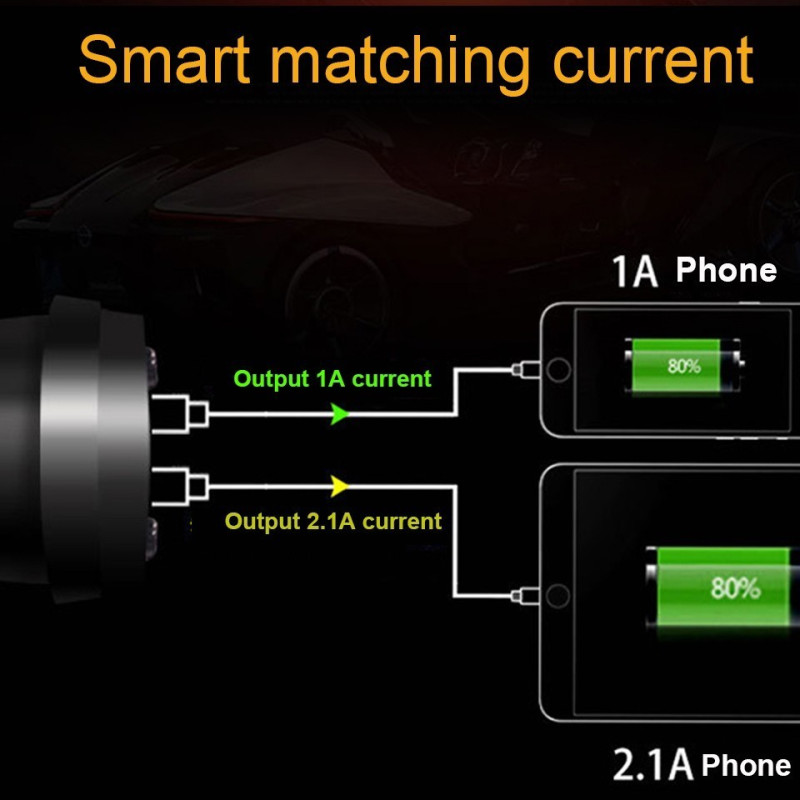 Разклонителят разполага с вграден волтметър, който ви показва актуалното напрежение на автомобила в реално време. С помощта на интелигентния LED цифров дисплей, можете да следите напрежението и зареждащия ток на вашето устройство. Ако напрежението на автомобила е по-ниско от 12V, разклонителят ще ви предупреди с мигащи цифри, за да гарантира безопасността на вашите устройства.