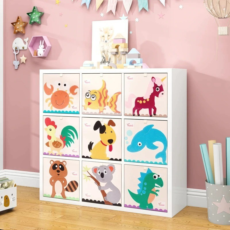 Сглобяването и съхранението на кутията са лесни и удобни. Тя може да се разгъне и сгъне според нуждите ви. Благодарение на здравата си конструкция, кутията може да се постави самостоятелно на рафтове, шкафчета и бюра. Удобният раздел отпред улеснява децата и възрастните да достъпват съдържанието на кутията, без притеснение за нараняване.