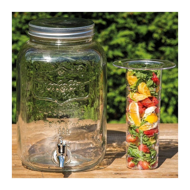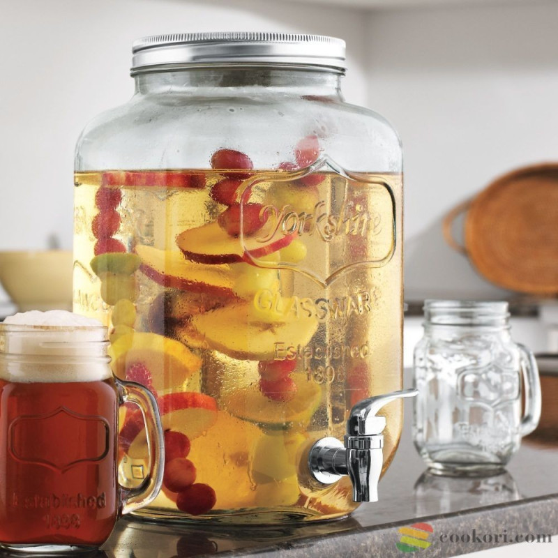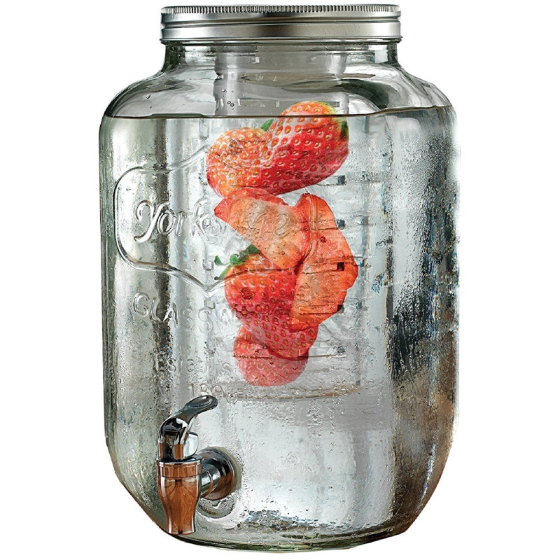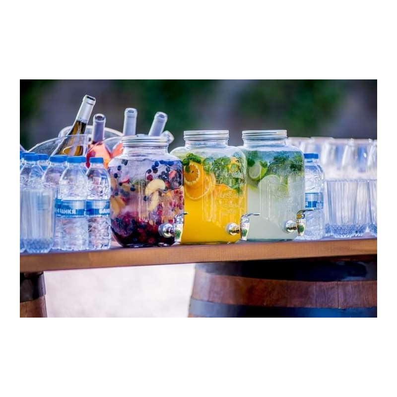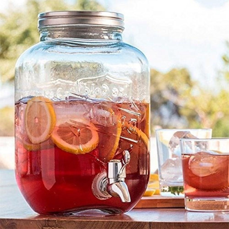 С вместимост от 4 и 5 литра, този буркан е идеален за всевъзможни напитки - от лимонада и слабо алкохолни коктейли до вино с плодове. Широката гърловина на буркана позволява лесно да напълните с лед или нарязани плодове, добавяйки освежаващ вкус и аромат на вашите напитки.
