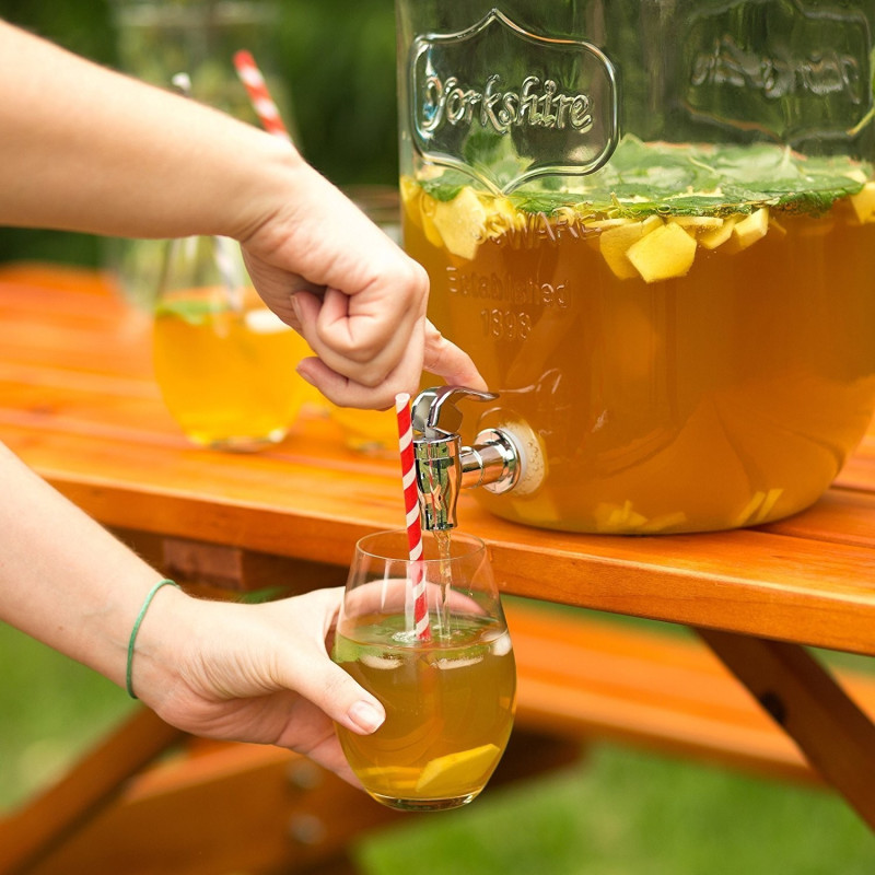 Нещо повече, наличието на металната капачка на резба и канелката/кранчето за удобно дозиране на напитката в чаша, правят този диспенсър перфектен за сервиране и удоволствие на вашите гости.