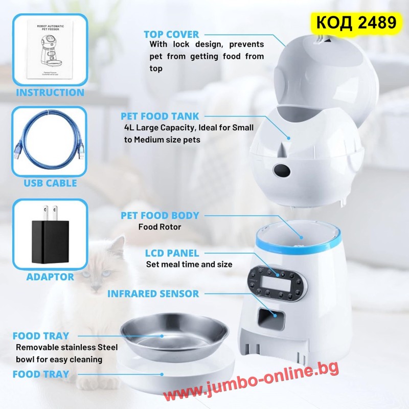 Автоматичен дозатор за хранене на куче и котка с програматор