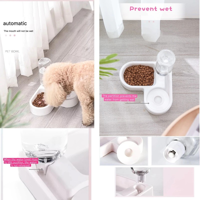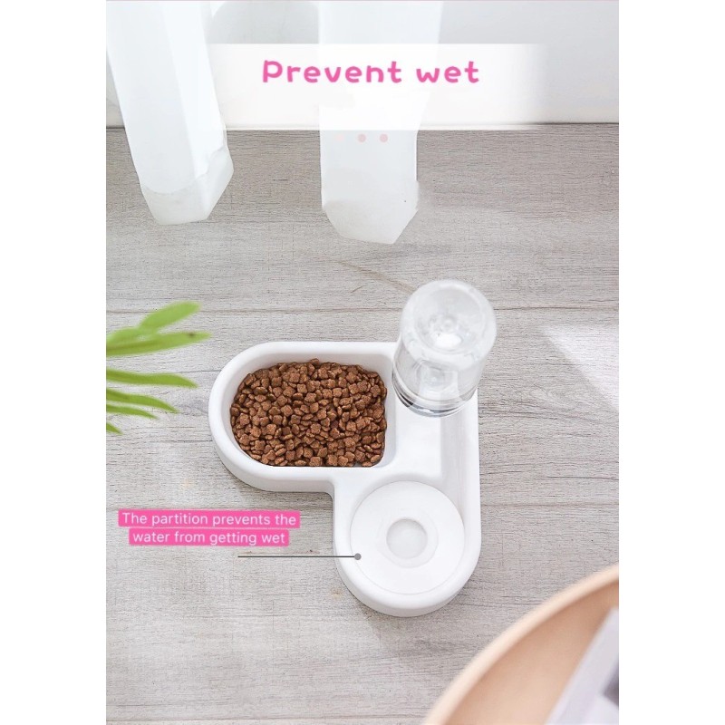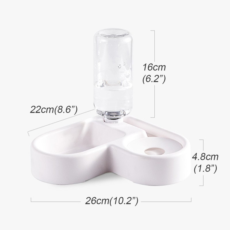 Изработена с внимание към всички детайли, нашата хранилка и поилка са идеални за вашите домашни любимци. Бутилката за вода с вместимост 500 мл. предотвратява разливането на водата, благодарение на своята иновативна технология. Рингът на отделението за водата предпазва от намокряне на козината около устата на вашето куче или котка.
