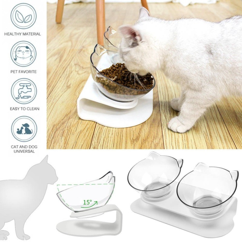 Поставката с две купи е проектирана така, че да предотврати разливането на храната или водата по подовете на дома ви. Това означава, че няма повече неудобства и мръсотия от разлята храна или вода на пода. Вие можете да се отпуснете и да се насладите на моментите с вашата котка, без да се тревожите за почистване след това.