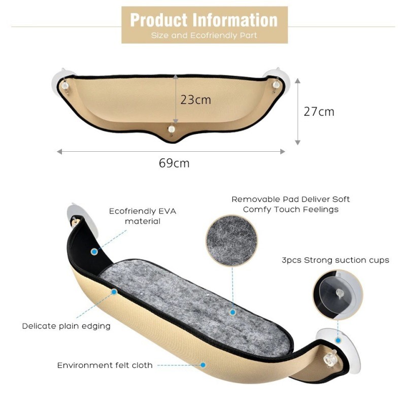 Това котешко легло е изключително лесно за монтиране. Просто го закрепете към гладка повърхност, като стъклена врата или прозорец и вашата котка вече може да се наслаждава на своето ново уютно гнездо. Леглото е изработено от дишаща материя, която осигурява комфорт и свежест на вашата котка.