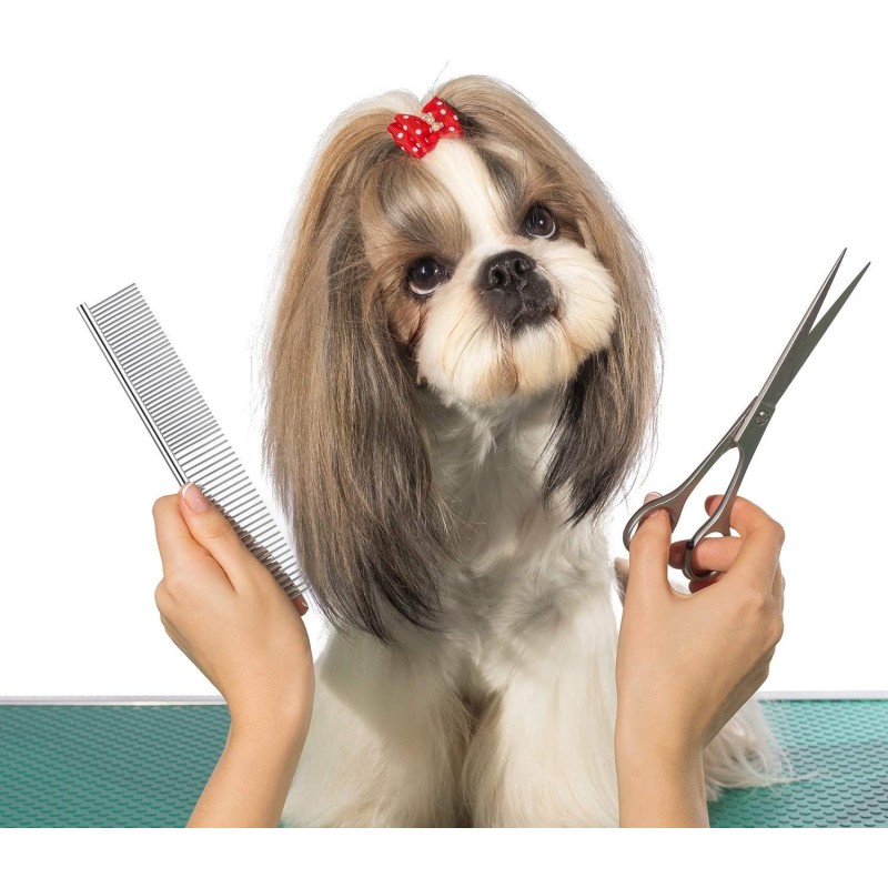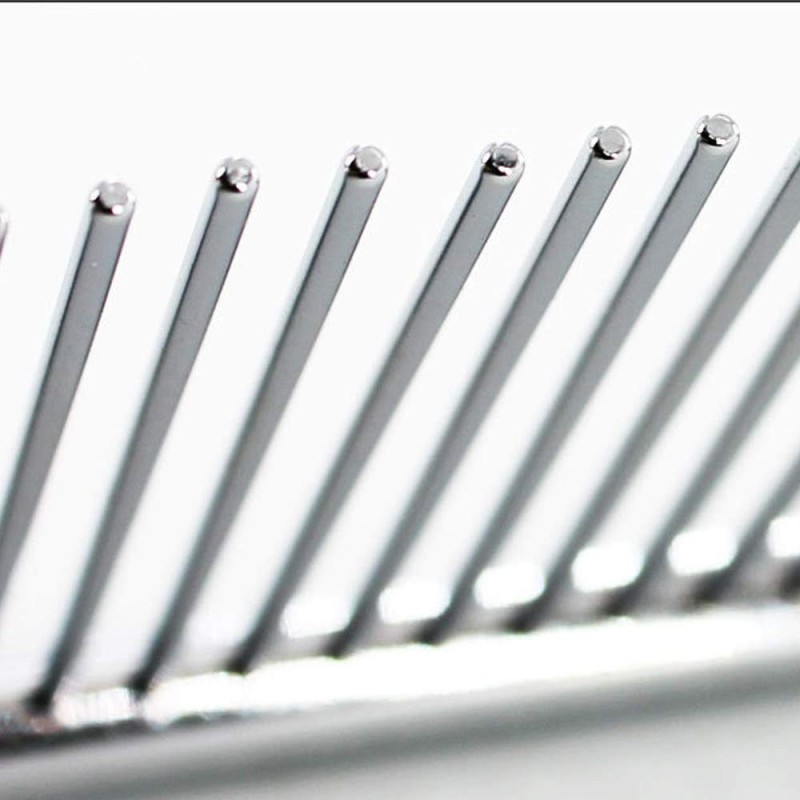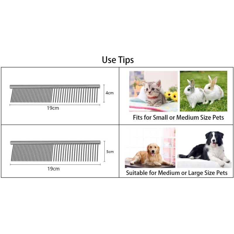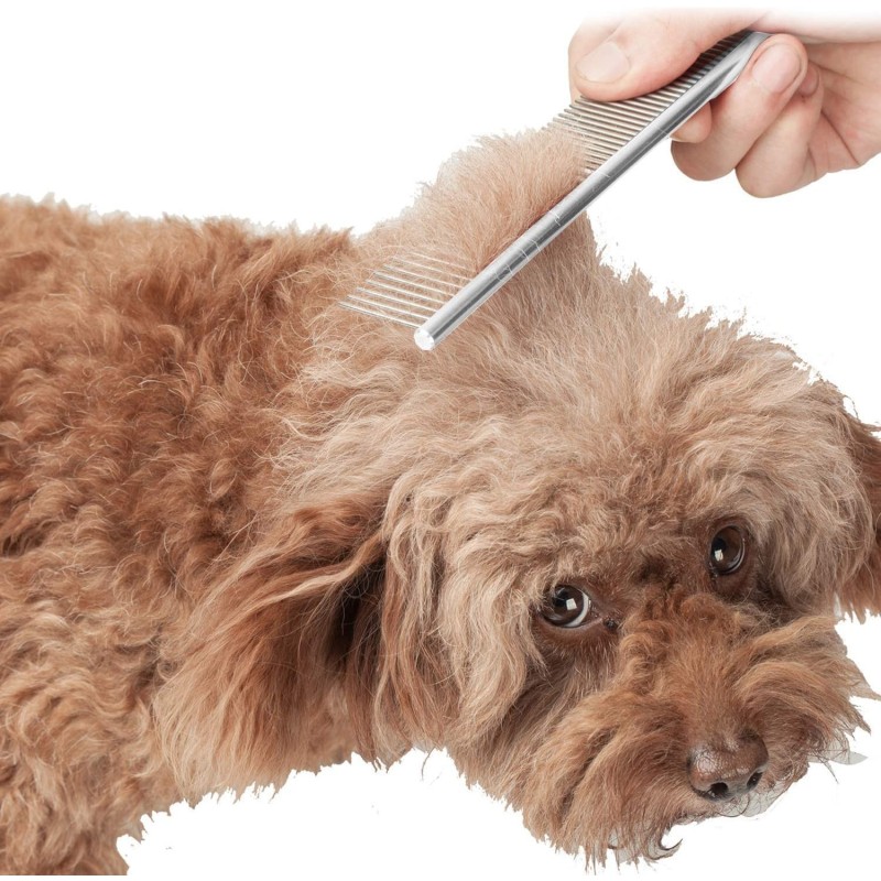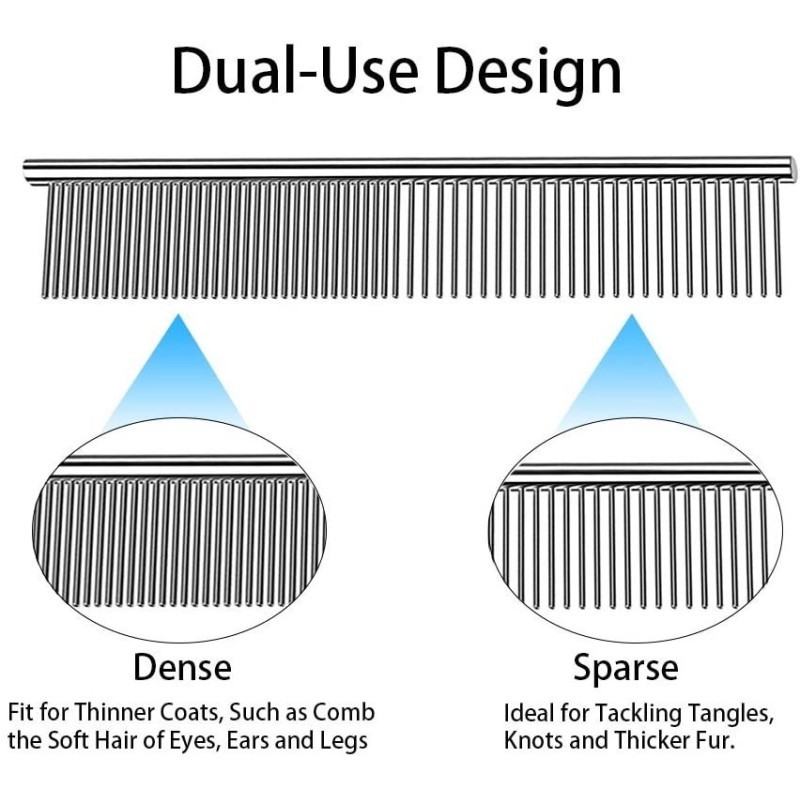 Неговите метални зъби са разположени в тесни и едри разстояния, което го прави идеален за лесното отстраняване на сплъстени участъци от космите на вашето животно. С този гребен можете лесно да разресвате възпламенените косми и да осигурите комфорт и красота на вашето домашно любимец.