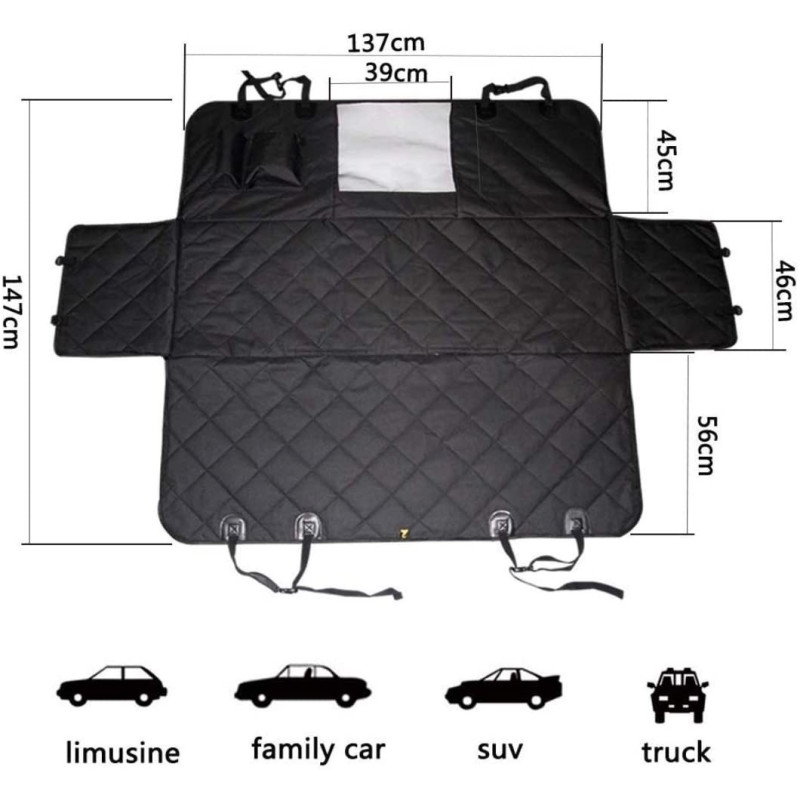 Размерите на нашето покривало са 147 х 134 см, което го прави подходящо за повечето автомобили. Сега вече можете да се насладите на пътуването си с вашето куче, без да се тревожите за чистотата и безопасността на автомобила.