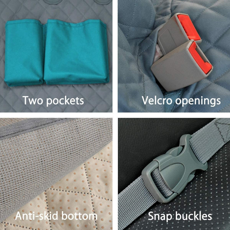 Нашето покривало е универсално и подходящо за повечето превозни средства. Лесно се монтира и сваля, което ви осигурява удобство и практичност. То е снабдено с два отвора за предпазния колан, което гарантира безопасността на вашия любимец при пътуване. И не на последно място, нашето покривало е снабдено с цип, който Ви позволява да наслаждавате на пътуването си заедно с човек на задната седалка.