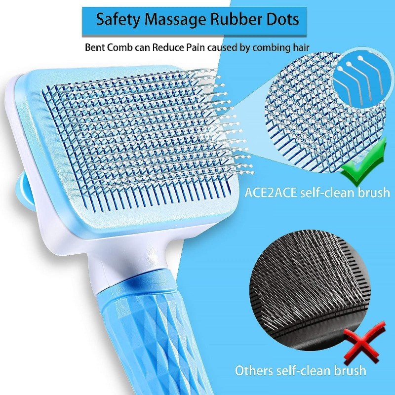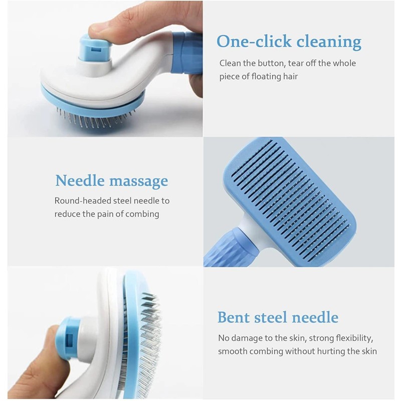 Нашата самопочистваща се четка е идеална както за котки, така и за кучета, и ще направи ежедневната грижа за тях по-лесна и приятна. Всяка четка е изработена от висококачествена неръждаема стомана и е покрита с пластмасов връх, за да се гарантира максимален комфорт и безопасност. Четките са също така оборудвани с фини огънати нишки, които проникват дълбоко в козината и подстригват добре подкосъма, без да надраскват кожата на вашите домашни любимци.