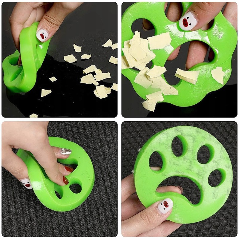Уредът е създаден във формата на лапа, което го прави идеален за събиране на власинки и пърхот по време на дълбокото почистване. Неговото гумирано покритие гарантира неплъзгащо се действие, без да оставя следи след употреба.