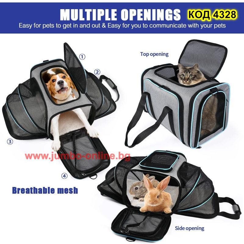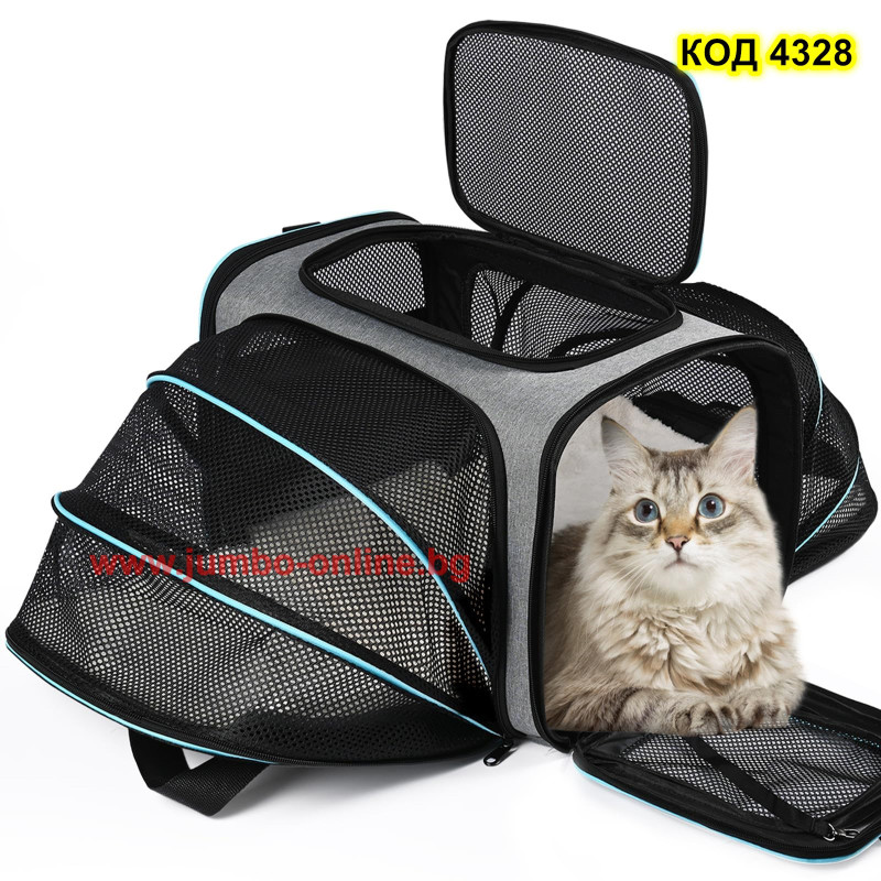 Представяме ви идеалната транспортна чанта за вашия домашен любимец, котка, куче, зайче и други – разширяема и сгъваема, с размери 45x30x30 см. Тази сива чанта е перфектният спътник за пътувания, разходки или посещения при ветеринар. С уникалната си конструкция, тя осигурява комфорт и безопасност на вашето животно, благодарение на своите два разтегателни врати и мрежести прозорци, които предлагат отлична видимост и вентилация. Възможността за разширяване предлага допълнително пространство, което е особено полезно за по-големи породи или за домашни любимци, които обичат да се разтягат.