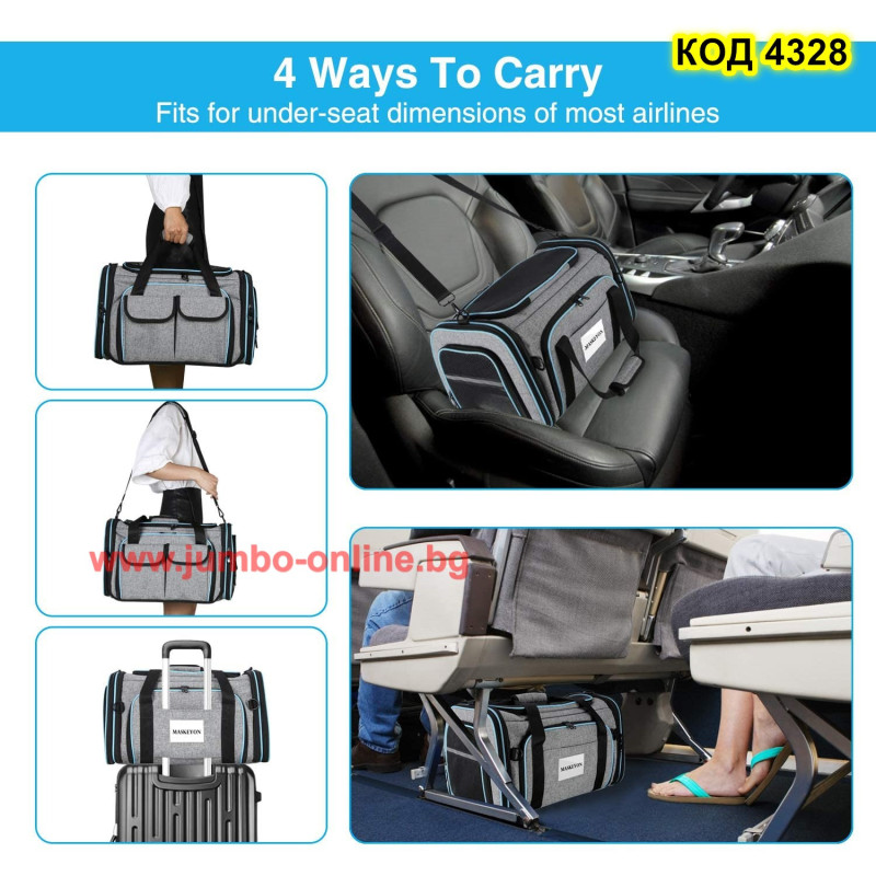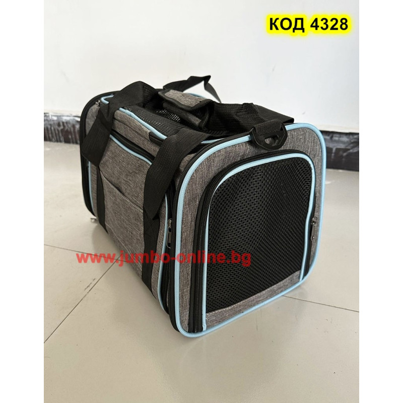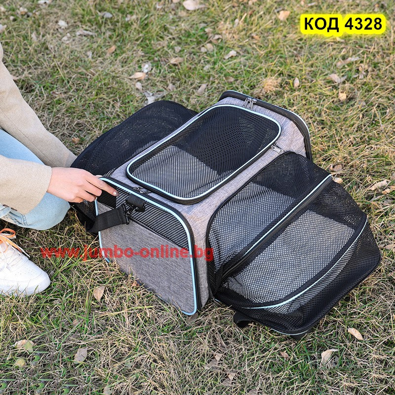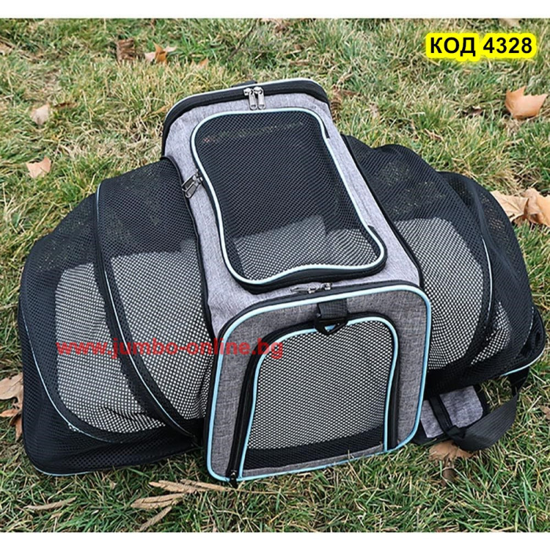 Транспортна чанта за животни, разширяема, сгъваема, сива, 45x30x30см
