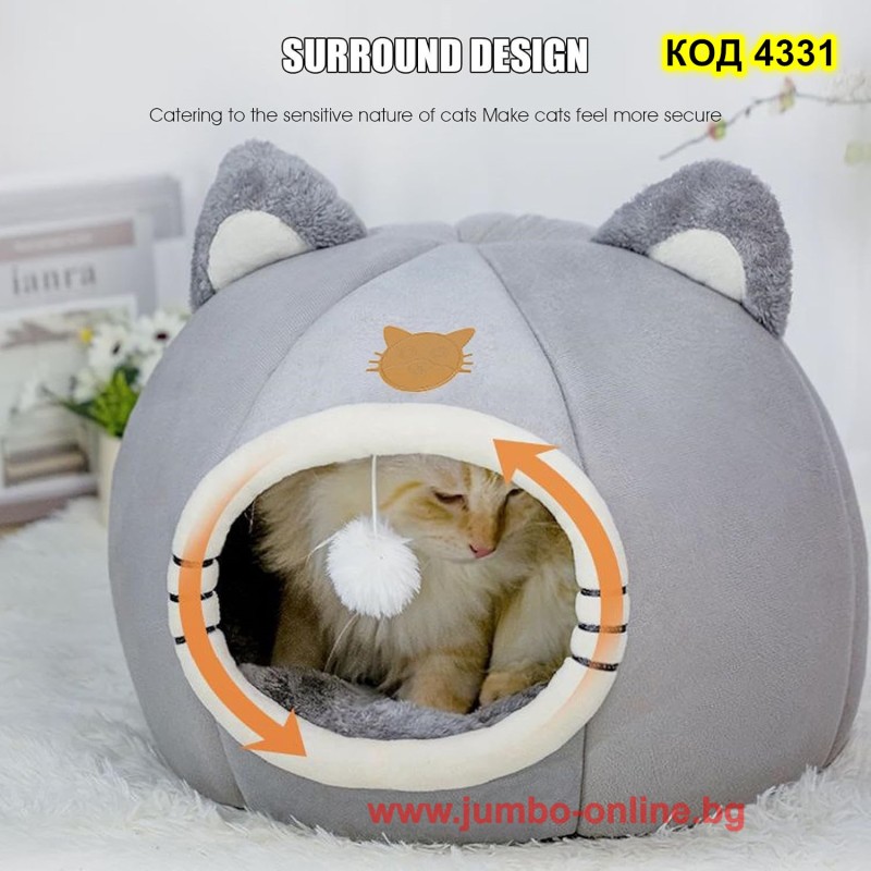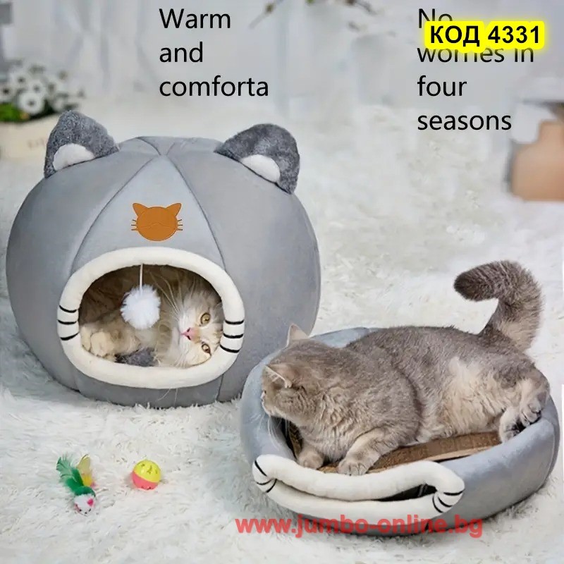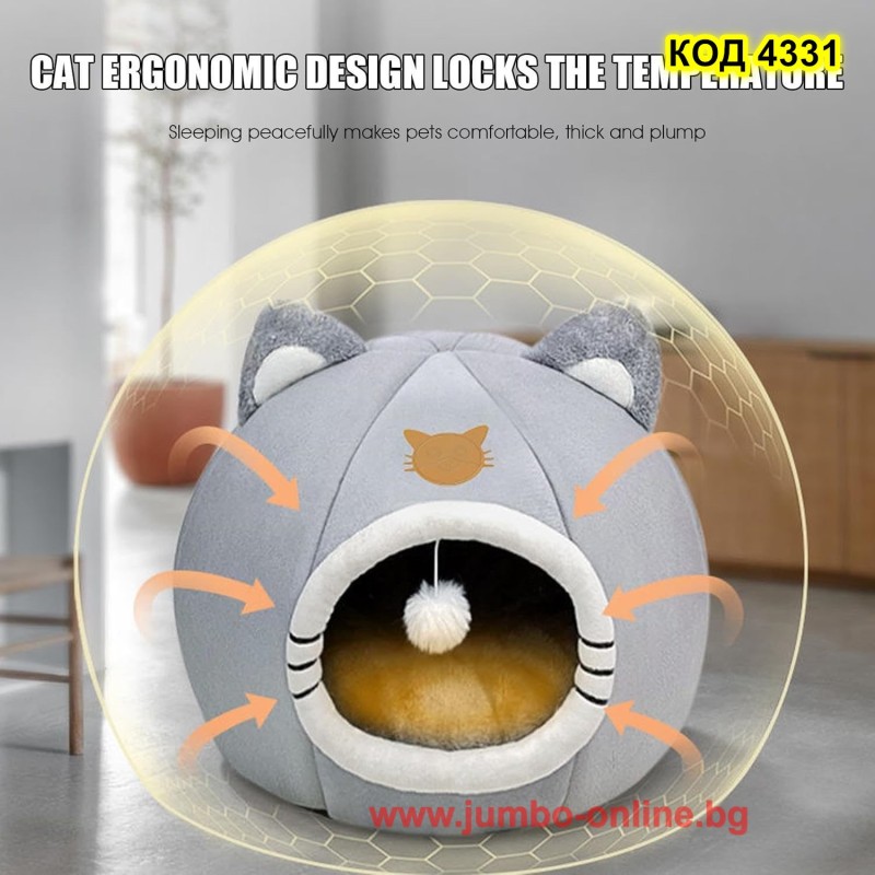 Благодарение на къщичката за котешки леговища вашият домашен любимец ще получи свое собствено уютно убежище, което ще бъде идеалното място за дрямка и почивка. Котката ви ще бъде щастлива да има свой собствен малък дом, а вие ще се сдобиете с естетически издържана и функционална част от домашното обзавеждане. Благодарение на водоустойчивата долна част няма да се притеснявате за мръсотия или влага, а издръжливият материал ще гарантира, че къщичката ще издържи дълги години на ежедневна употреба.