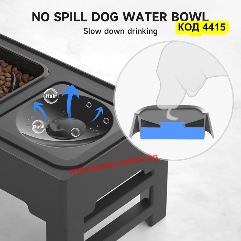 Двойна купа за кучета на стойка, бавно хранене и пиене на вода