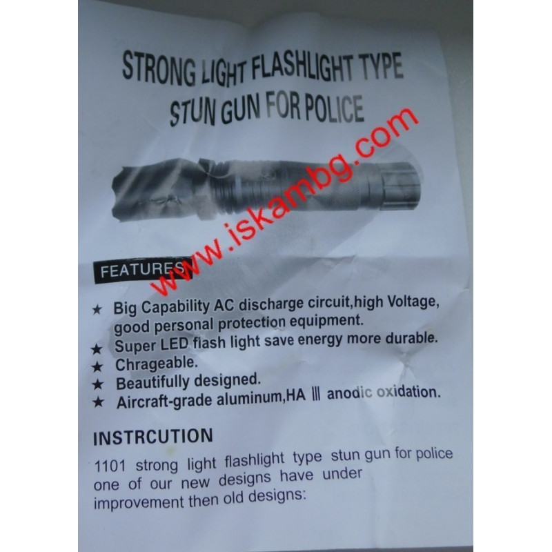 Ефективното средство за самоотбрана Type 1101 Light Flashlight е перфектната комбинация от фенер и електрошокер, които ви осигуряват максимална защита и сигурност. С мощност от 1000kV, този акумулаторен фенер е идеален за различни ситуации - от самоотбрана и самозащита, до използване в палатка, туризъм, кола или за охранителни цели.