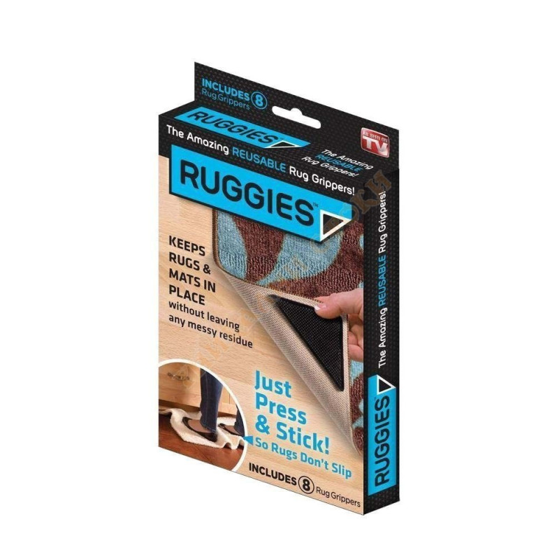 Представяме ви Ruggies - иновативни силиконови подложки против плъзгане за килими и пътеки. Тези малки силиконови триъгълници са специално създадени, за да осигурят здраво прикрепване на вашите килими към подовата настилка, без да оставят никакви следи или остатъци.