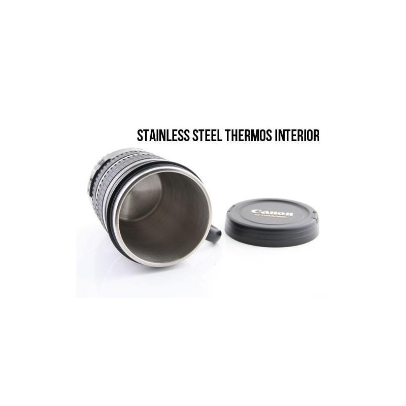 Визията на тази чаша е абсолютно копие на фотообектив Canon, като добавените релеф и материал срещу изплъзване ви осигуряват по-голяма стабилност при държане. Също така, чашата разполага със стабилно капаче, което не само предпазва съдържанието от разливане, но и ви дава сигурност при движение.