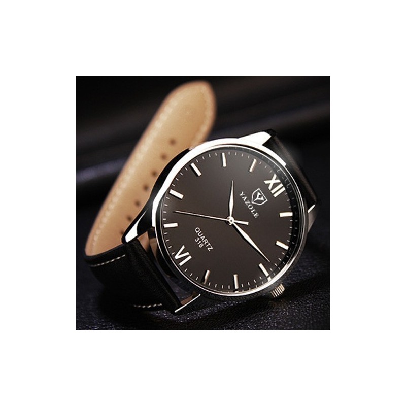 Часовникът е оборудван с минерално стъкло, което осигурява ясна видимост и защита от надраскване. С диаметър от 4 см. и дебелина от 0,9 см., моделът предлага удобство и лекота при носене. Каишката е с дължина 23 см. и ширина 2 см., като имате възможност да изберете между черен корпус с черна каишка или черен корпус с кафява каишка, за да се адаптирате към своя стил и предпочитания.