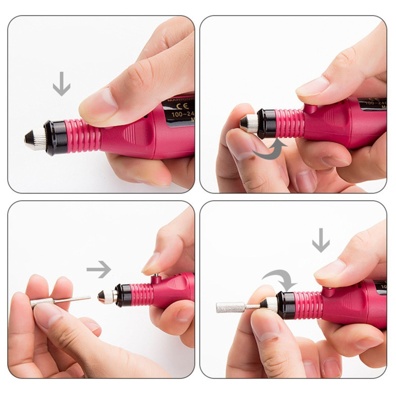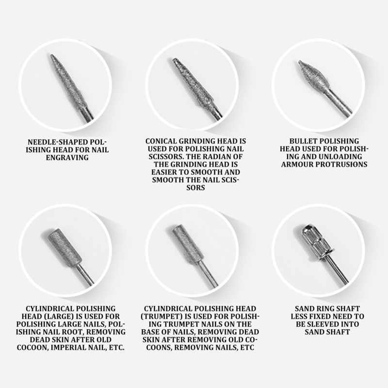 Тази електрическа пила е подходяща както за естествени, така и за изкуствени нокти и може да се използва както в салон, така и в домашни условия. С 6 различни приставки, всяка от които със свое специално предназначение, тази пила е истинска мултифункционална уредба за грижа за ноктите.