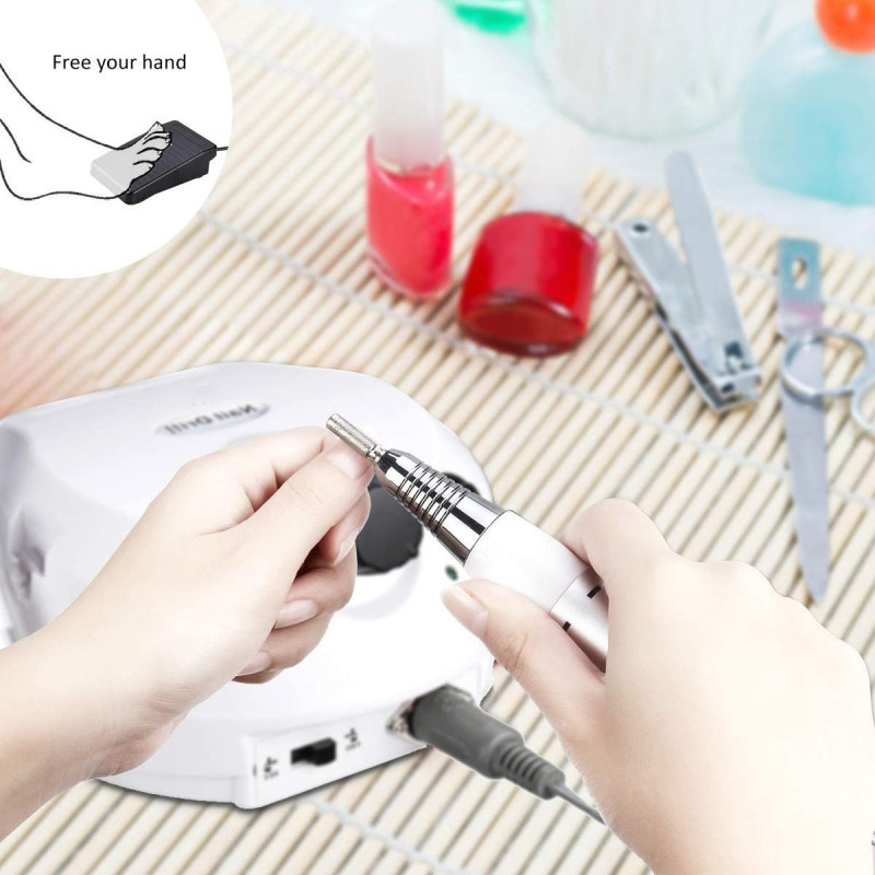 Привлекателната електрическа пила за маникюр и педикюр с 30 000 оборота е професионален инструмент, който ще ви помогне да постигнете перфектна грижа за ноктите си. Тя е снабдена с два режима на работа и може да функционира както с педал, така и без него. За вашия комфорт, оборотите могат да бъдат регулирани от 0 до 30 000 от корпуса на уреда или от педала.