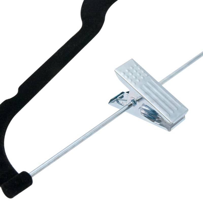Черна закачалка с щипки - перфектното решение за организацията на вашето облекло и аксесоари. Тази стилна и функционална закачалка е снабдена с удобни щипки, които ще ви помогнат да застопорите вашите чаршафи, рокли, блузи, панталони и други дрехи безопасно на място.