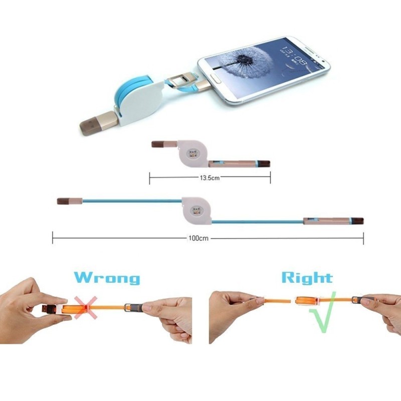 Дължината на кабела е 100 см, което ви дава свобода на движение и удобство при ползване. Но най-важното, този кабел е снабден с телескопичен механизъм, който позволява лесно прибиране и съхранение. Просто дръпнете от двете страни и кабелът ще се прибере на мястото си, без да заема допълнително пространство.