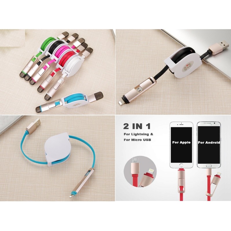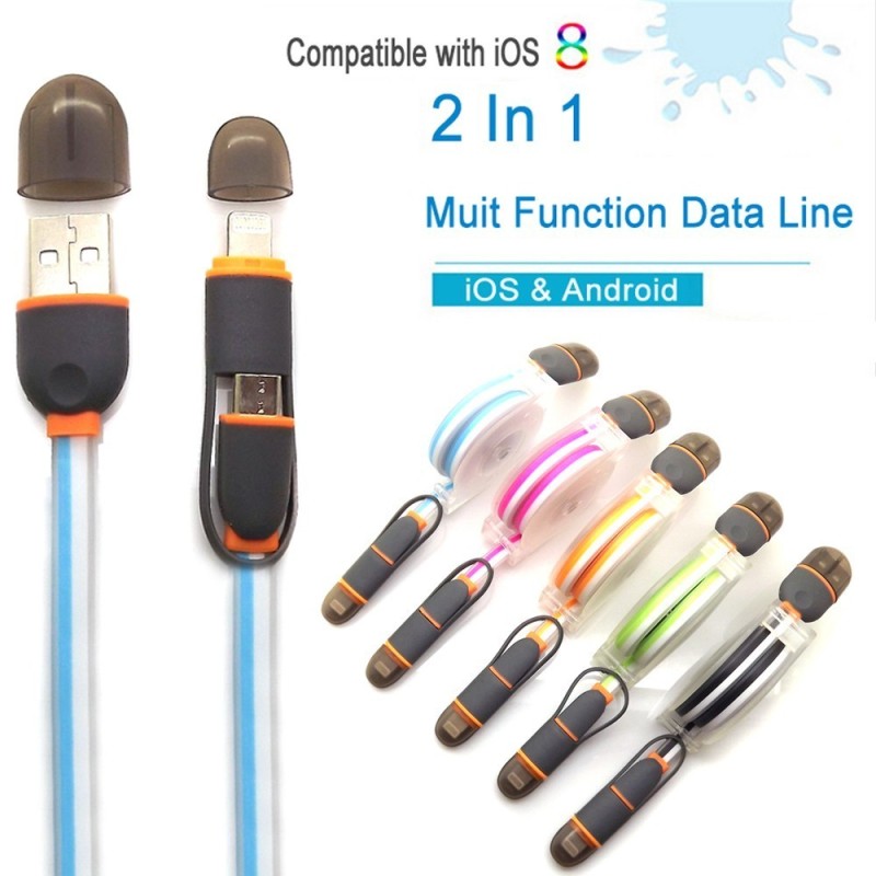 2 в 1 Микро USB за зареждане на телефони с накрайник за Iphone тип Ролетка