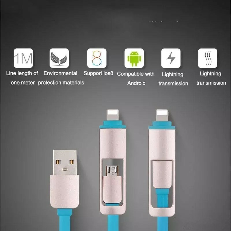 Този USB кабел е оборудван с микро USB за синхронизиране на данни, както и с 8-пинов светкавичен конектор за Android и iPhone устройства. Това означава, че можете да използвате единственият кабел за всичките си устройства, без да се налага да носите със себе си няколко различни кабела.