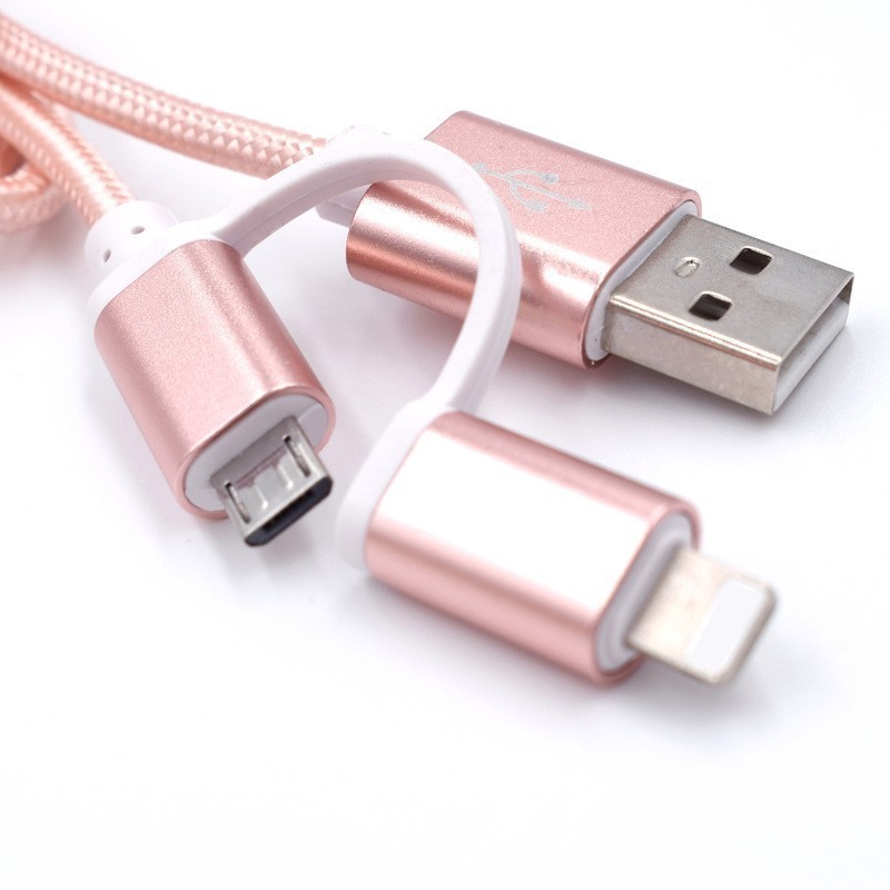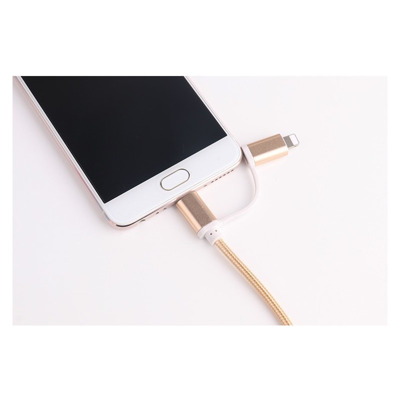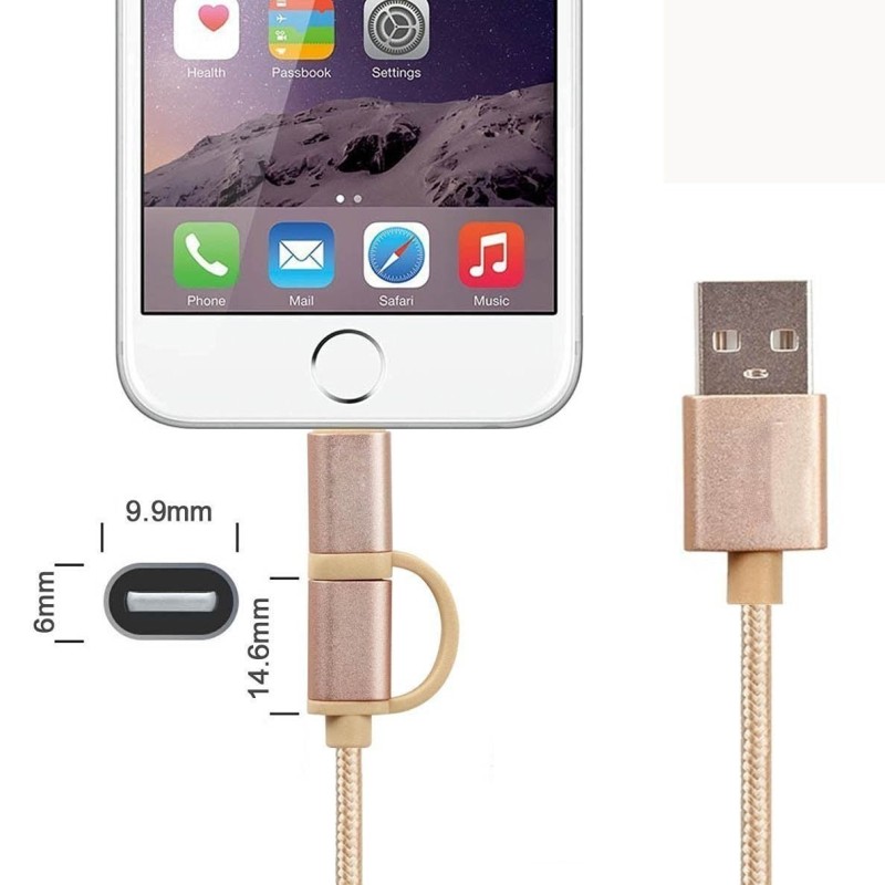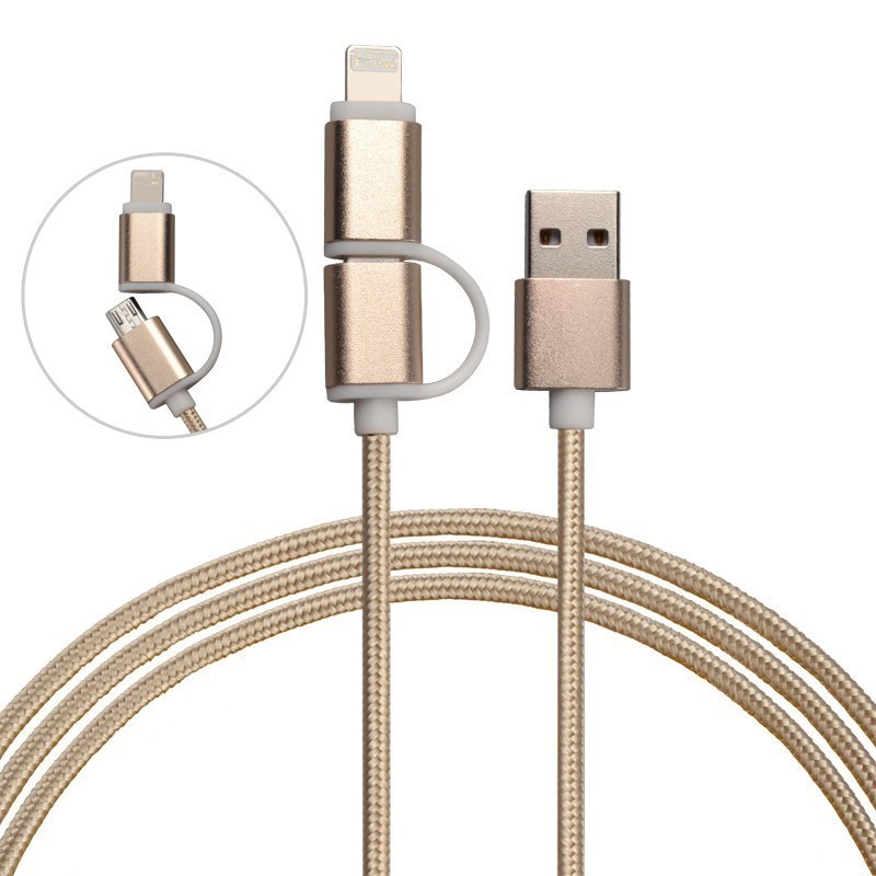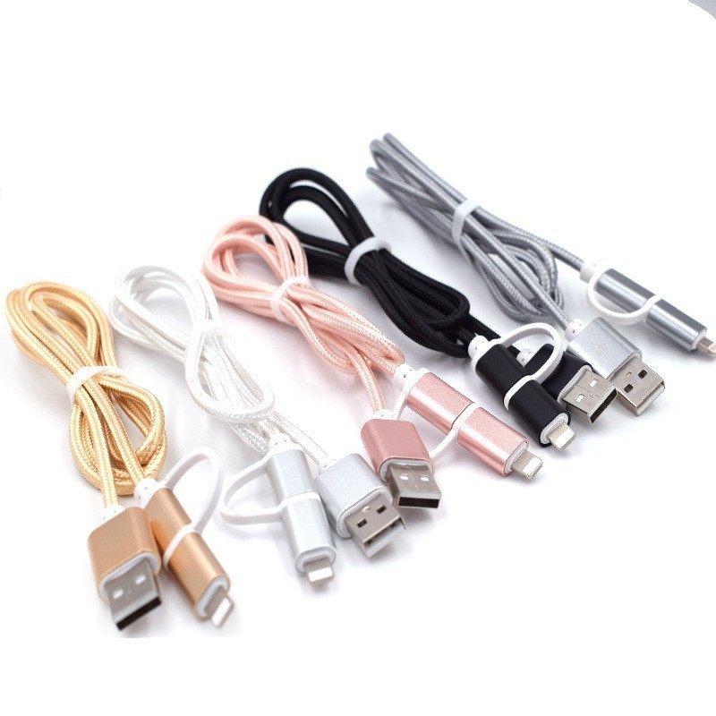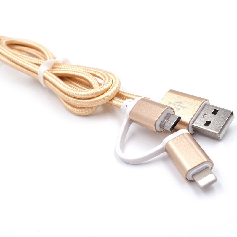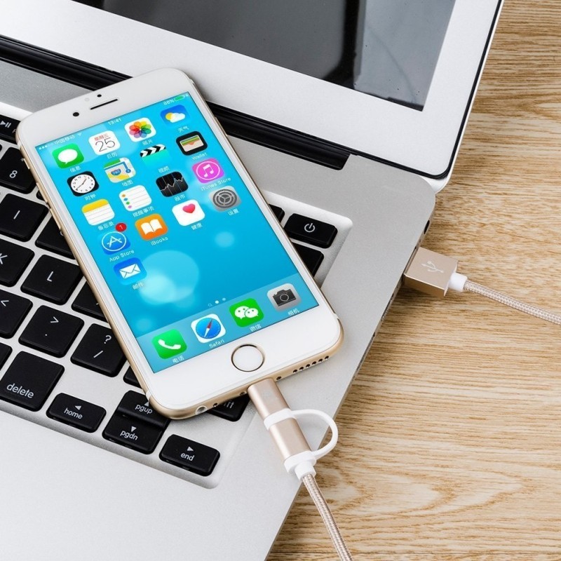 2-в-1 кабелът за зареждане USB-A Type-C за iPhone е идеалното решение за всички, които притежават iPhone и Android устройства. Този комбиниран текстилен кабел е снабден с micro-USB, Lightning и Type-C конектори, което го прави подходящ за зареждане и трансфер на данни за различни модели телефони.