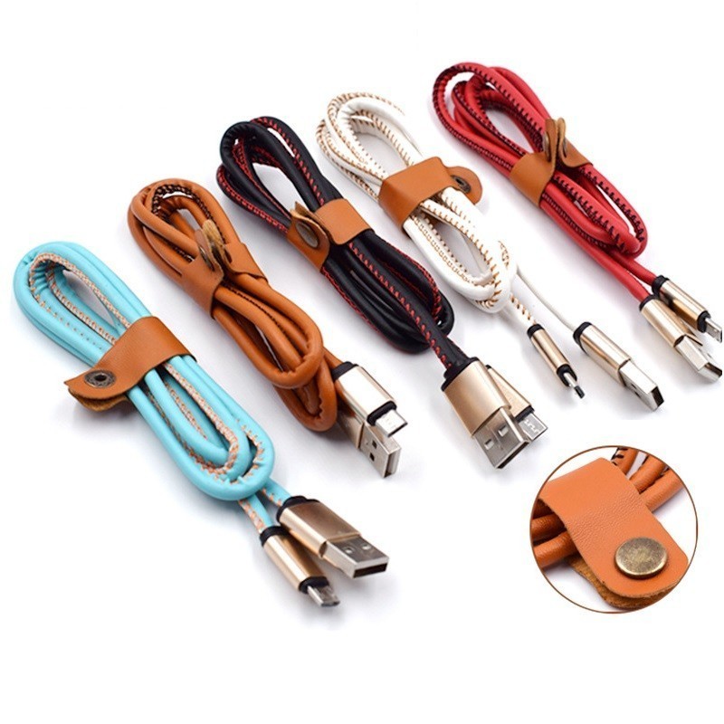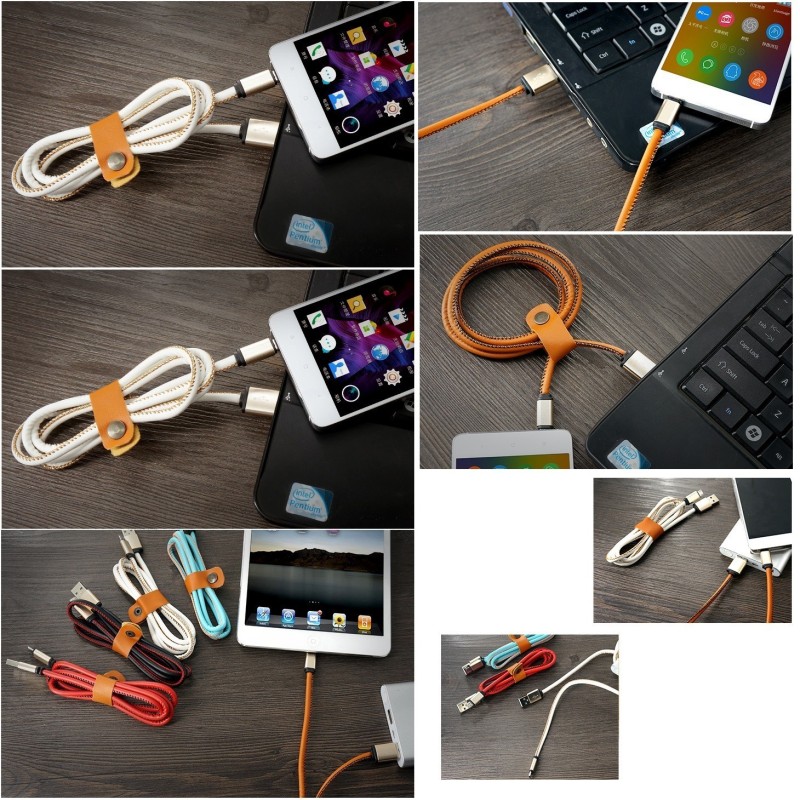 USB Кабел за зареждане на мобилни устройства с кожено покритие - 1 метър