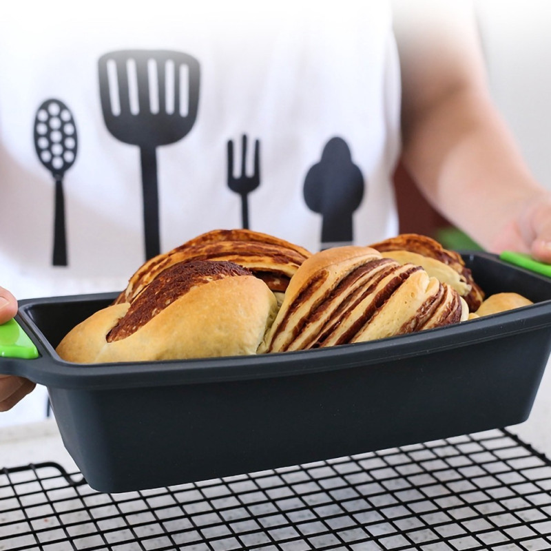 Включете тази правоъгълна силиконова форма в своето кухненско оборудване и се насладете на лесното и удобно приготвяне на разнообразни сладки изкушения. Вече няма да се притеснявате от залепнало тесто или трудно почистване. Разнообразете вашите рецепти и се насладете на перфектни резултати с тази силиконова форма за печене.