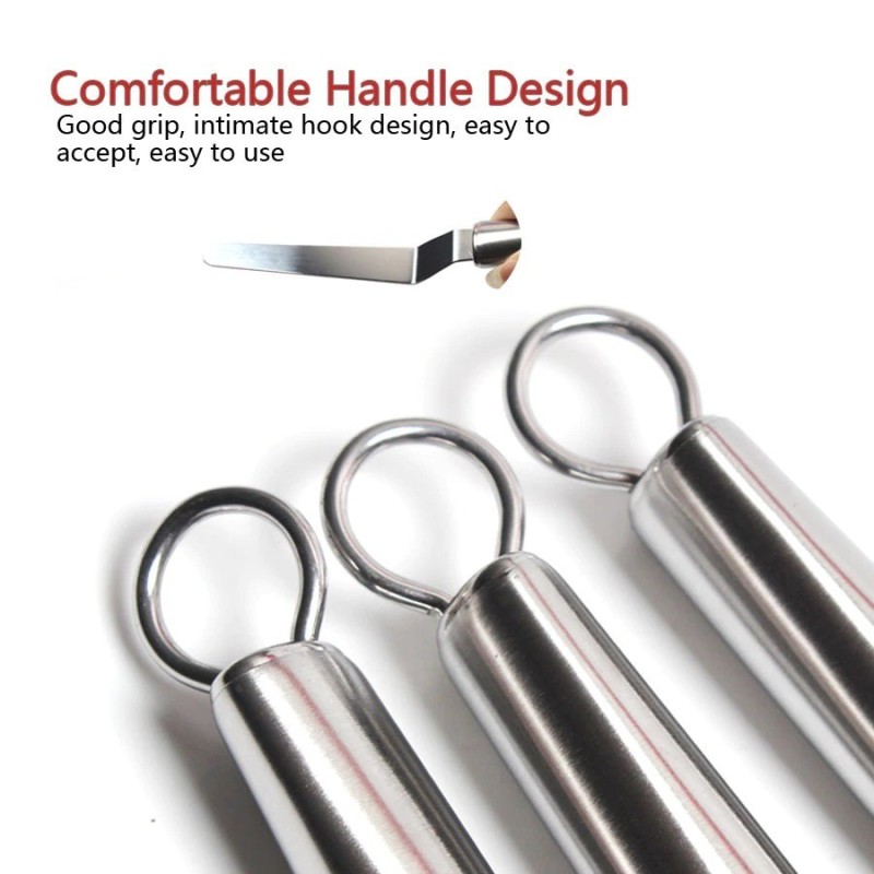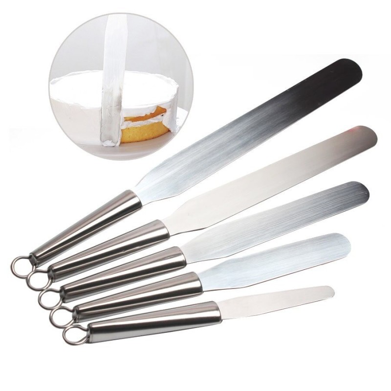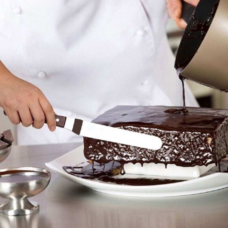 Крива сладкарска шпатула за разнасяне на глазури и кремове на торти с дължина 11, 15.3, 20.3, 25.3 и 30.3см.