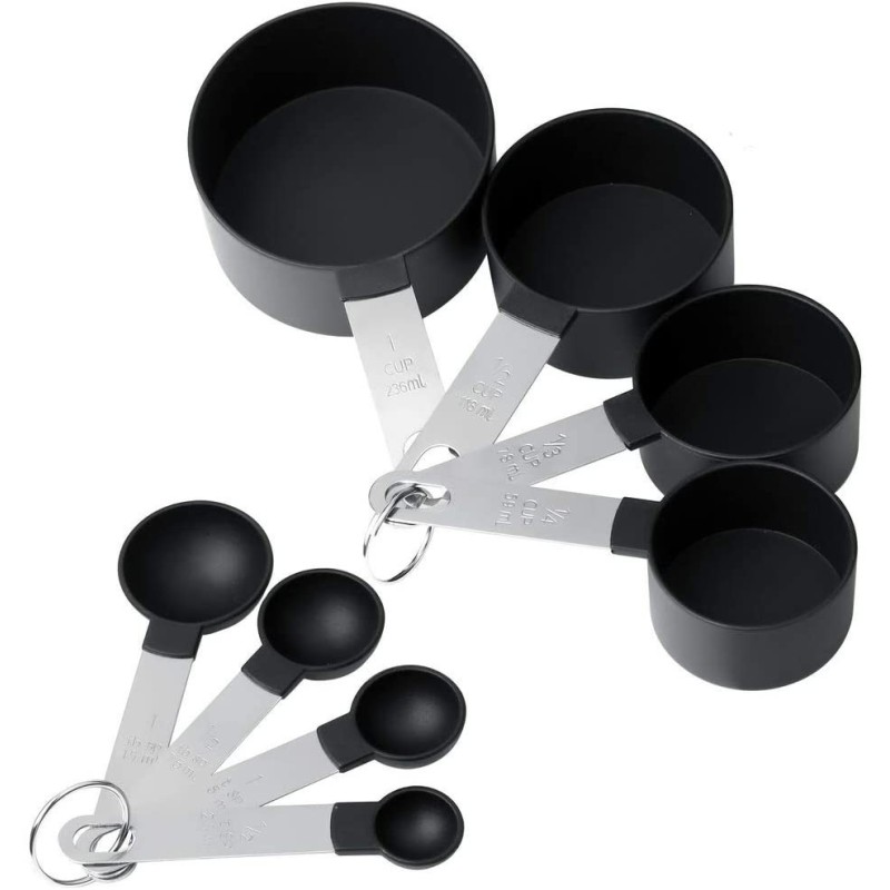 Комплект от 8бр. мерителни чашки и лъжички със стоманена дръжка