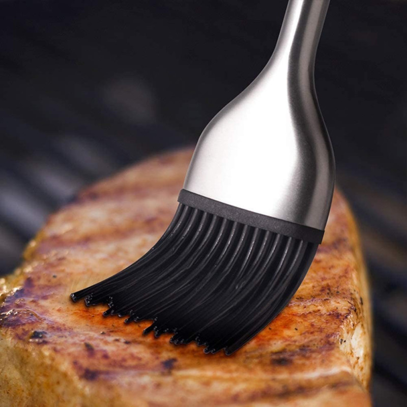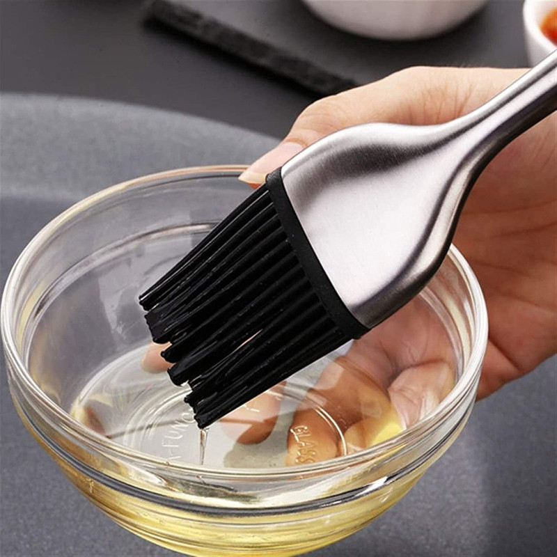 Домакинска силиконова четка със стоманена дръжка за намазване на ястия и тигани