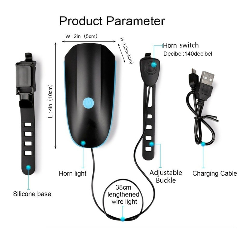 Със своите 120 децибела мощност, този фенер фар се отличава със своя силен звук, който не само ще предупреждава другите участници в движението за вашето присъствие, но и ще привлича вниманието на всички около вас. С вградената си презареждаща батерия с капацитет 1200 mAh и с помощта на включения в комплекта USB кабел, можете лесно да зареждате фенера, когато е необходимо.