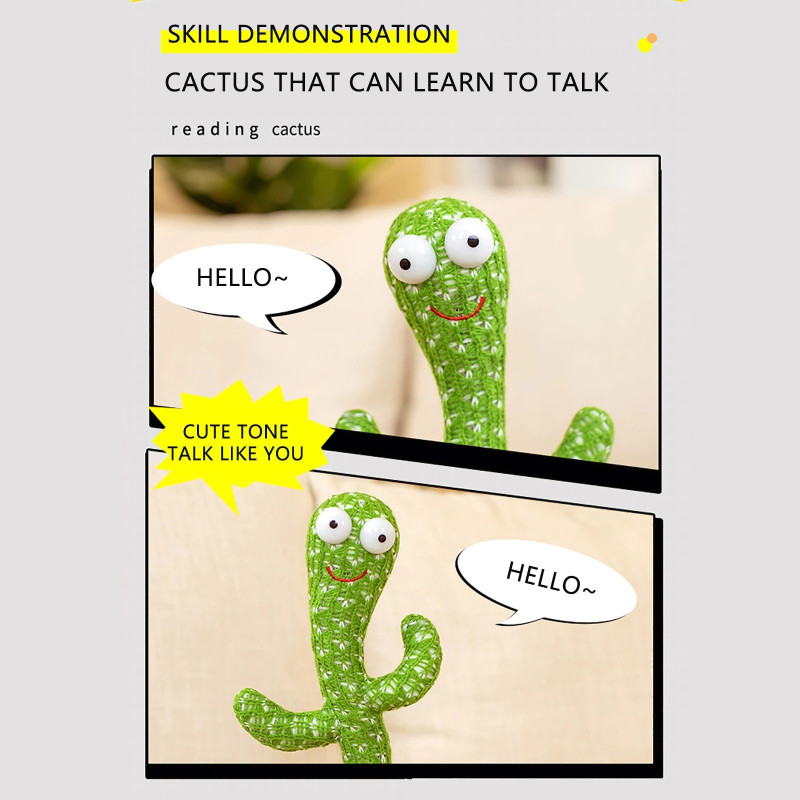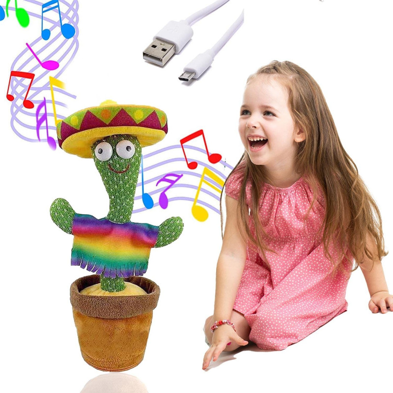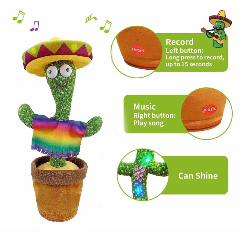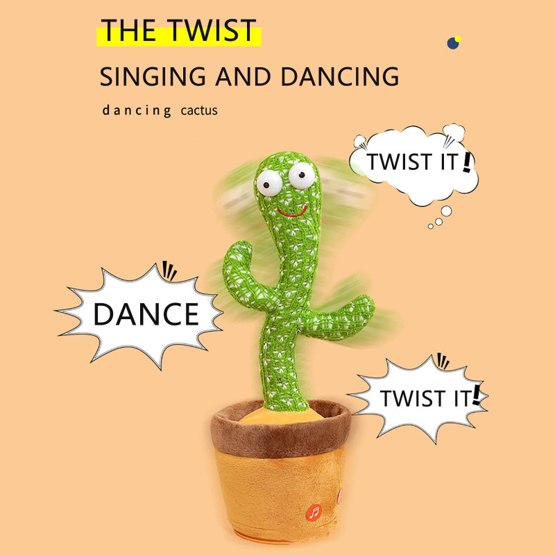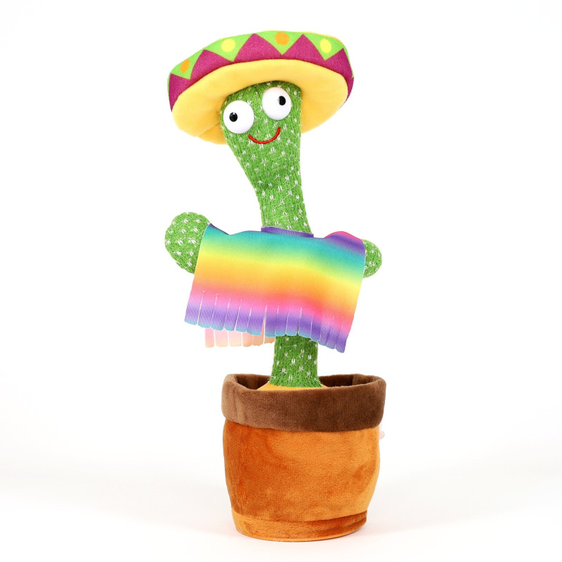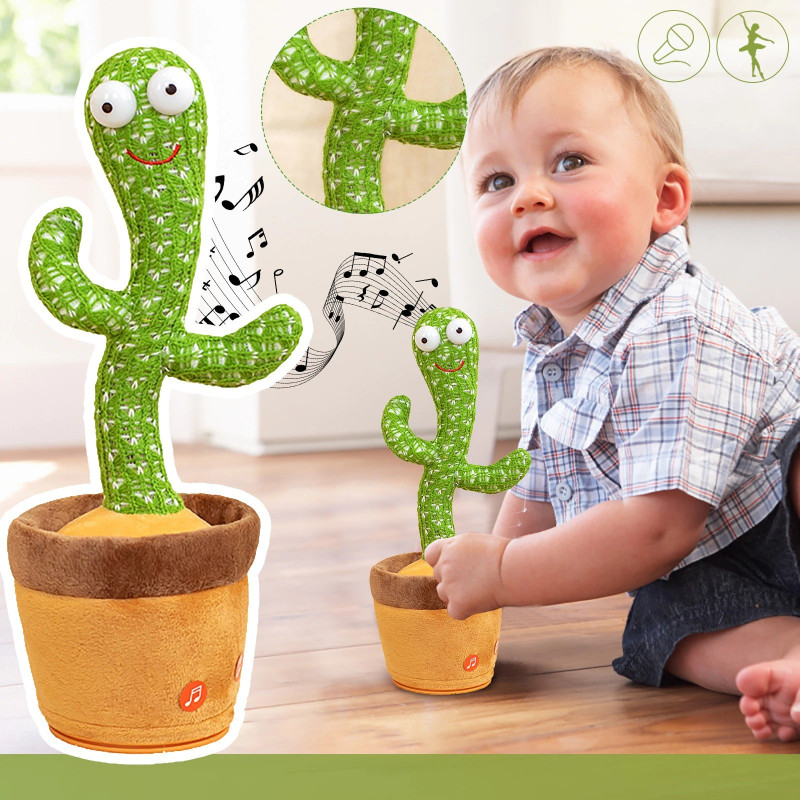 Кактус, който пее и танцува? Има големи очи и усмихнато лице? Да, става въпрос за забавна играчка, която всеки ще хареса. Интересната играчка е изработена от плетена плюшена материя. Когато пее е танцува, със сигурност ще привлече вниманието на вашето малко дете. Този танцуващ плюшен кактус ще се люлее и ще пее страхотни песнички, създавайки оживена и топла атмосфера във вашия дом, носейки на вашето дете незабравими моменти. Играчката възпроизвежда десетки песни на английски език. Освен забавна, тя е и образователна, тъй като помага на детето ви да научи нов език. Това е супер сладък кактус в саксия, изработен от висококачествен плетен плюш, мек и гладък на допир.