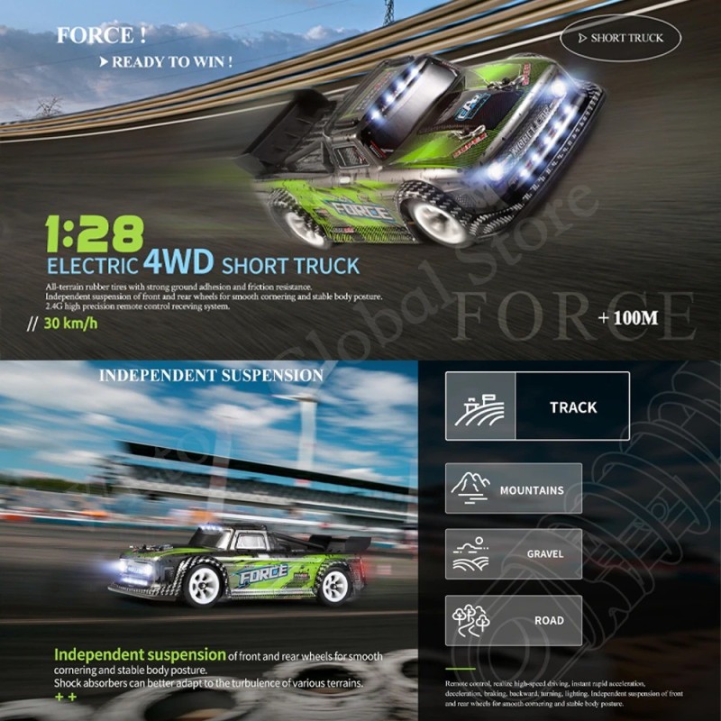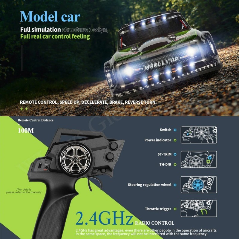 Комплектът включва: кола, дистанционно, Li-Po батерия, USB зарядно, упътване, кутия и резервни зъбни колела.