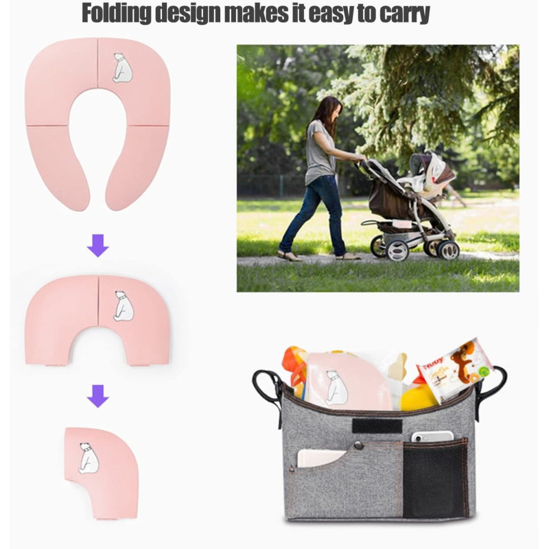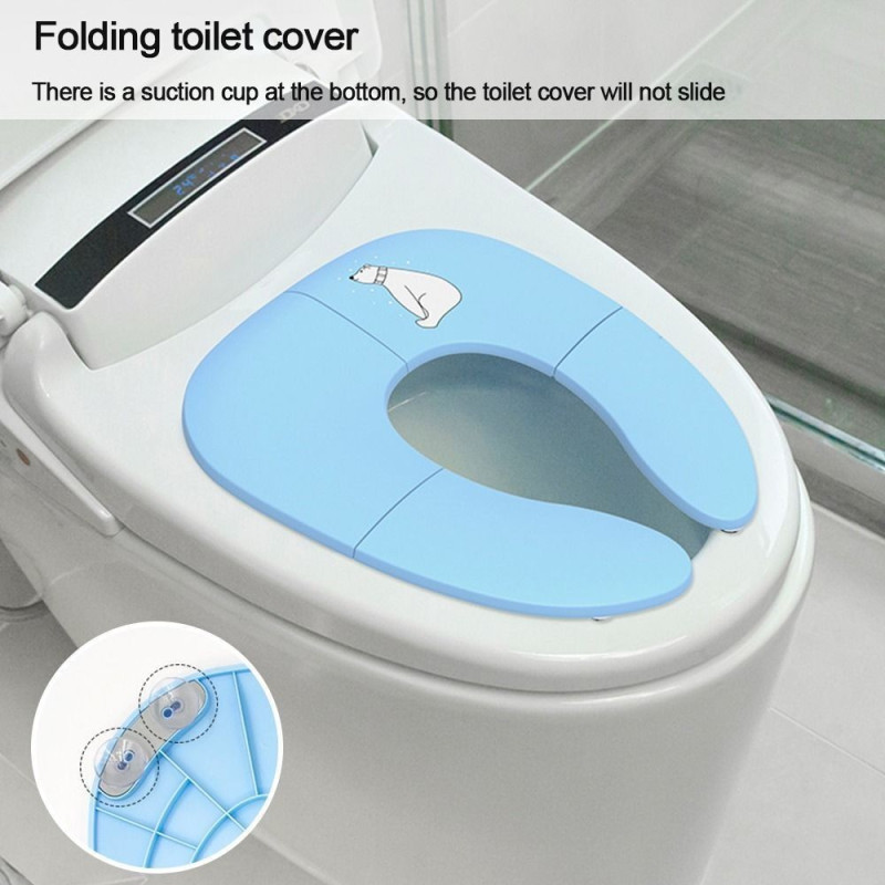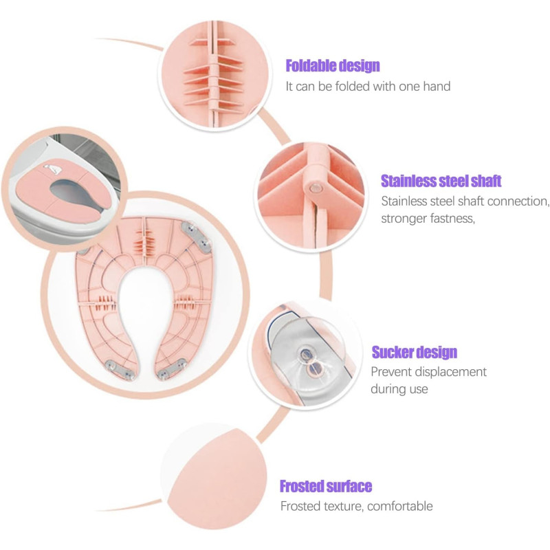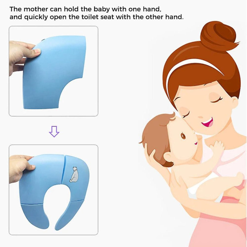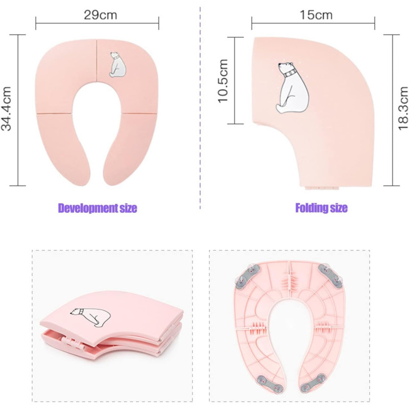 Сгъваема, преносима: нашата сгъваема детска дъска за тоалетна чиния позволява лесно намаляването на размера на тоалетната седалка, без риск, че Вашето мъниче може да падне вътре. Разгъва се и се поставя лесно върху тоалетната чиния, като е съвместима с повечето тоалетни чинии. Благодарение на преносимия си дизайн, тя може да се сгъва и да се носи навсякъде, като заема малко място.