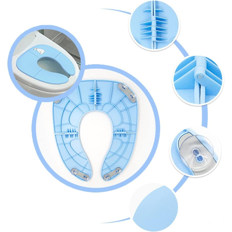 Сгъваема детска дъска за тоалетна чиния, която се сгъва лесно, за да заема по-малко място и може да се носи в чанта или раница навсякъде. Почиства се със сапун и вода.