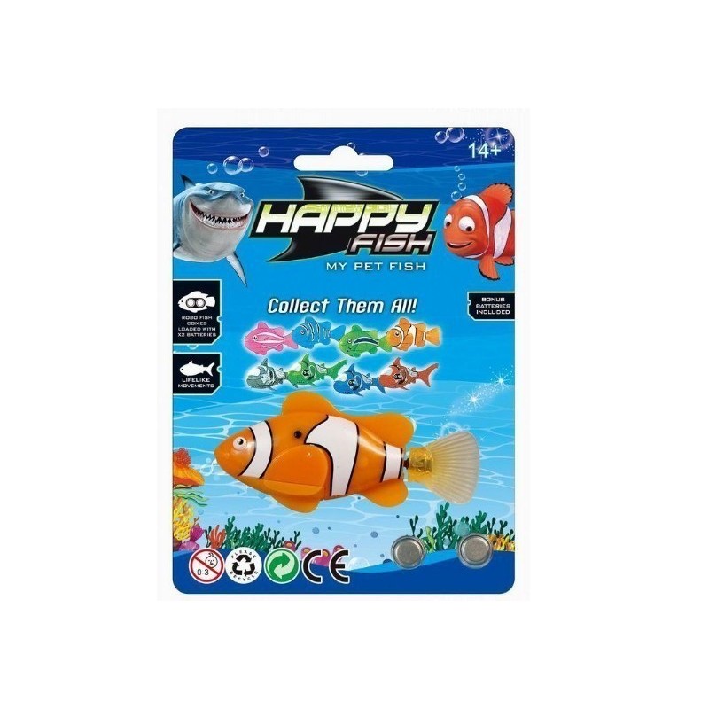 Happy Fish робо рибките са подходящи за деца над 3 години и ще ги зарадват със своята забавност и реализъм. Направете аквариума у дома ви по-вълнуващ и магичен с тези робо рибки. Изберете своята любима цветова комбинация и се насладете на виртуалната рибна компания, без да се налага да се грижите за тях. Happy Fish - робо рибките, които ще ви зарадват и ще ви отведат в света на морските приключения!