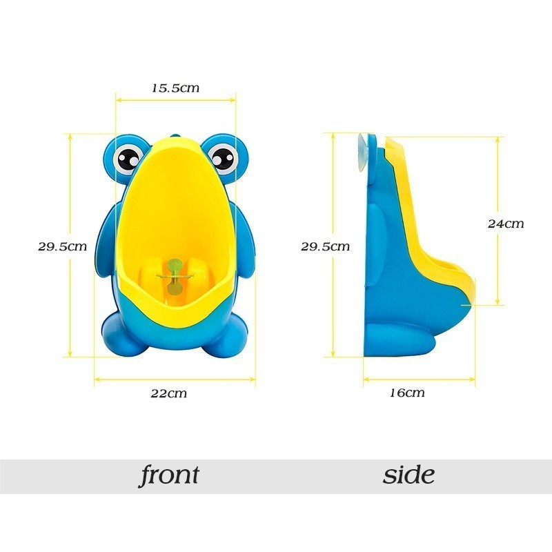 Със своята уникална форма на жаба, нашият детски писоар предоставя забавление и удоволствие за децата. Включената перка, която се върти, когато я уцелиш, прави изживяването още по-забавно и интересно за вашето дете.